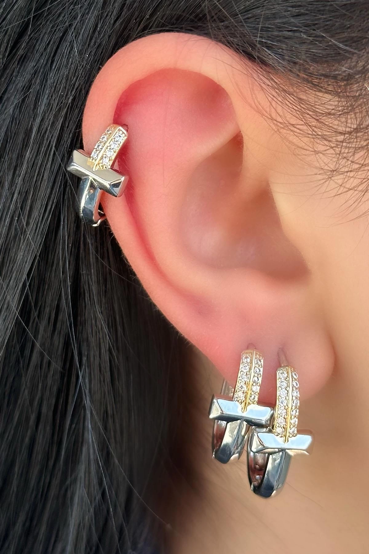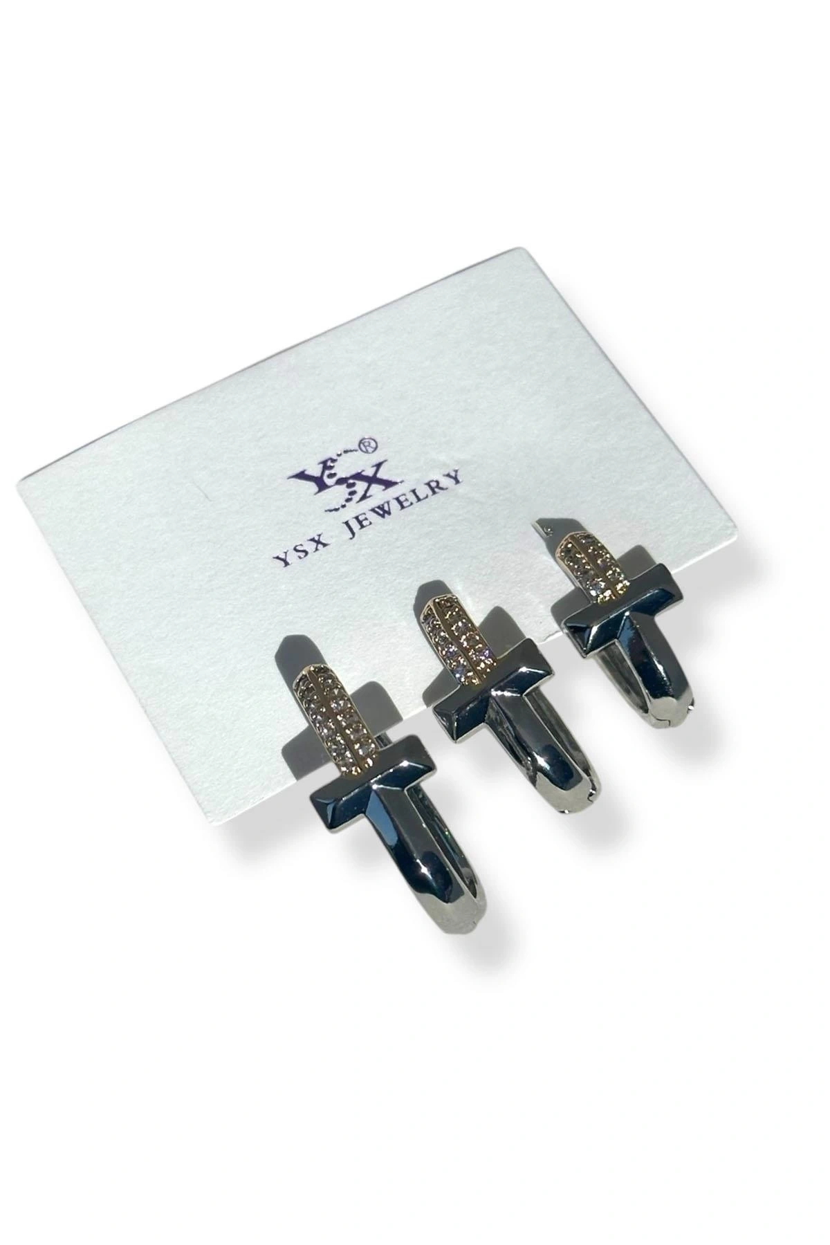 Gümüş Renk Taş Detaylı 3'lü YSX Küpe Set