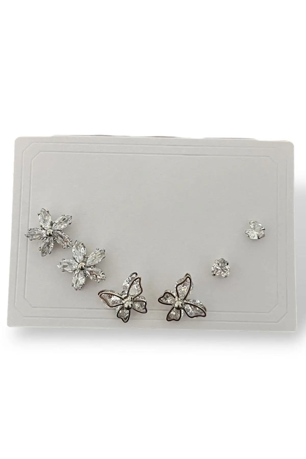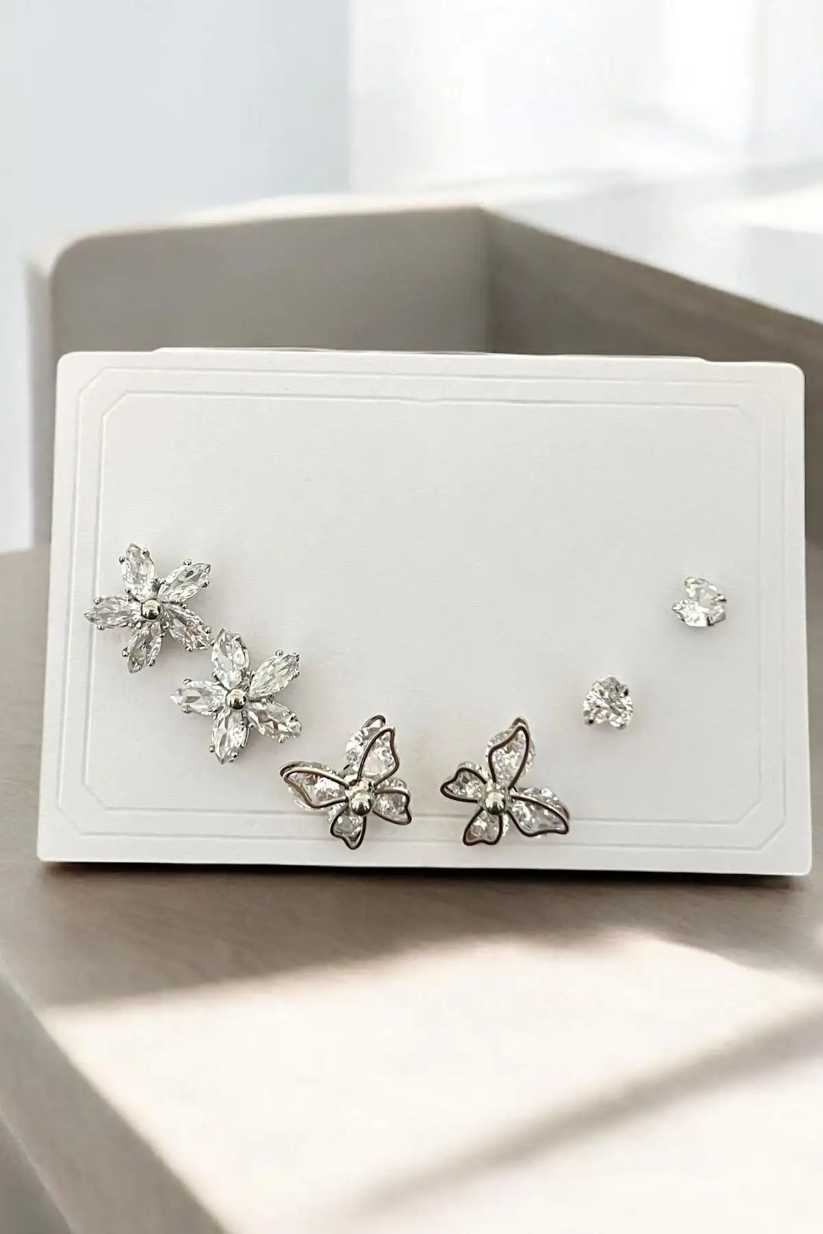 Gümüş Renk Taş Detaylı 6'lı Küpe Set
