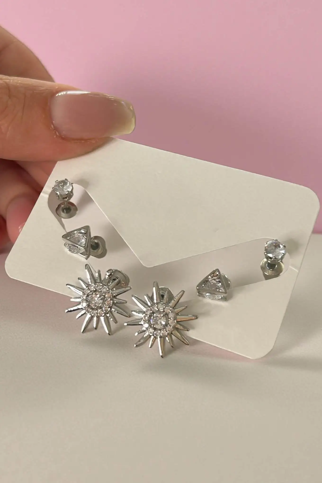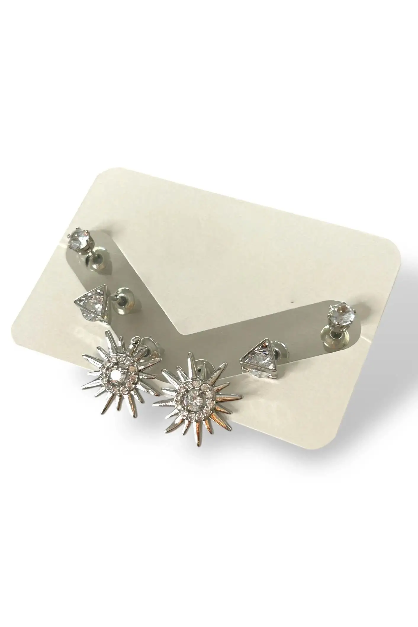 Gümüş Renk Taş Detaylı 6'lı Küpe Set