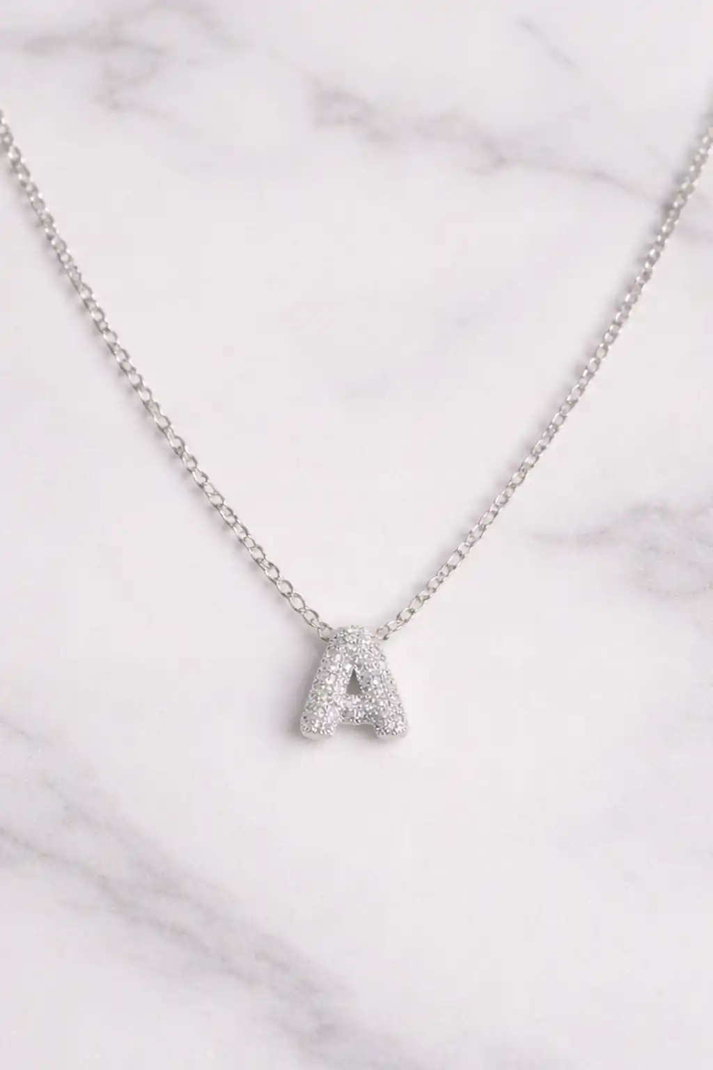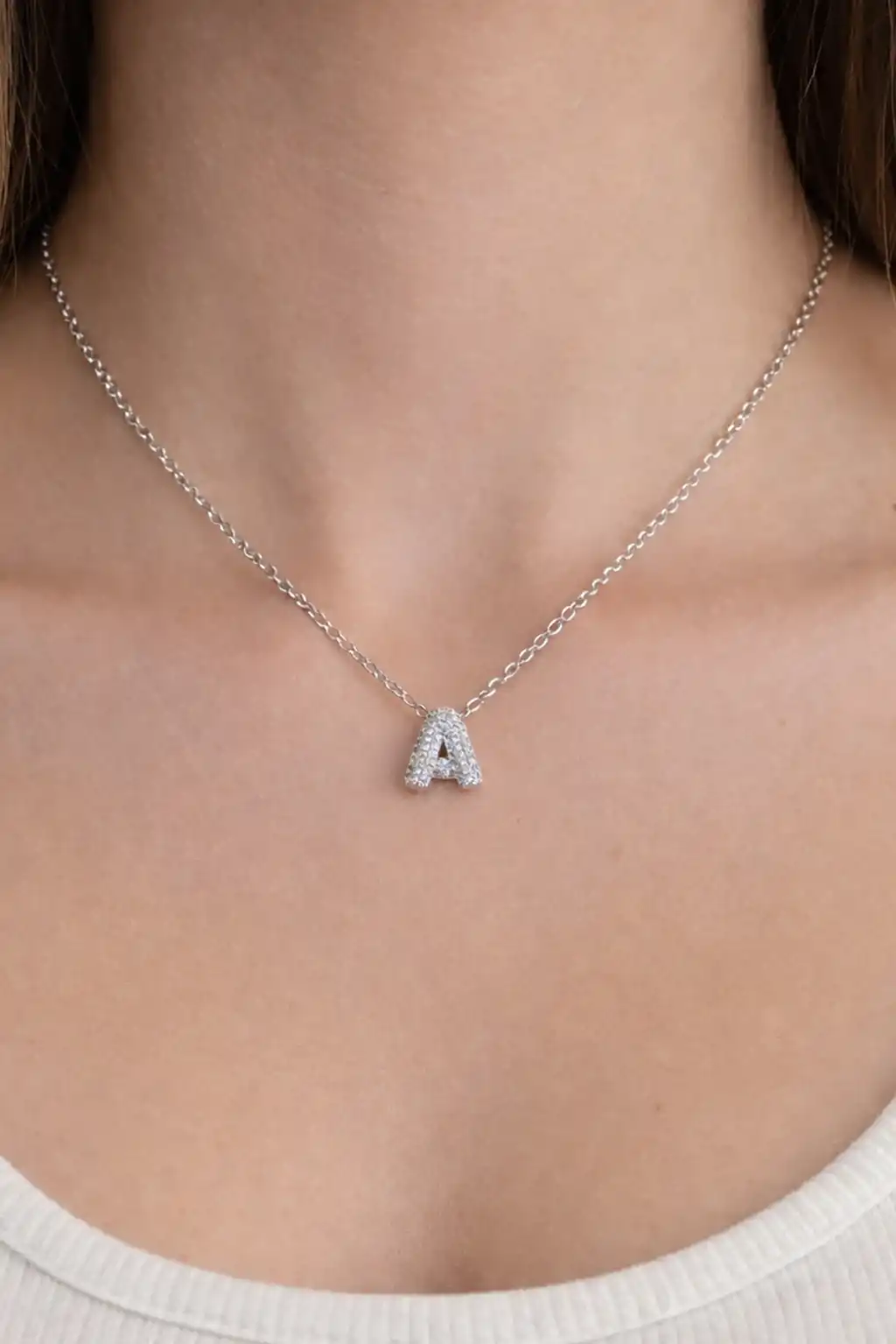 Gümüş Renk Taş Detaylı A Harfli Çelik Kolye