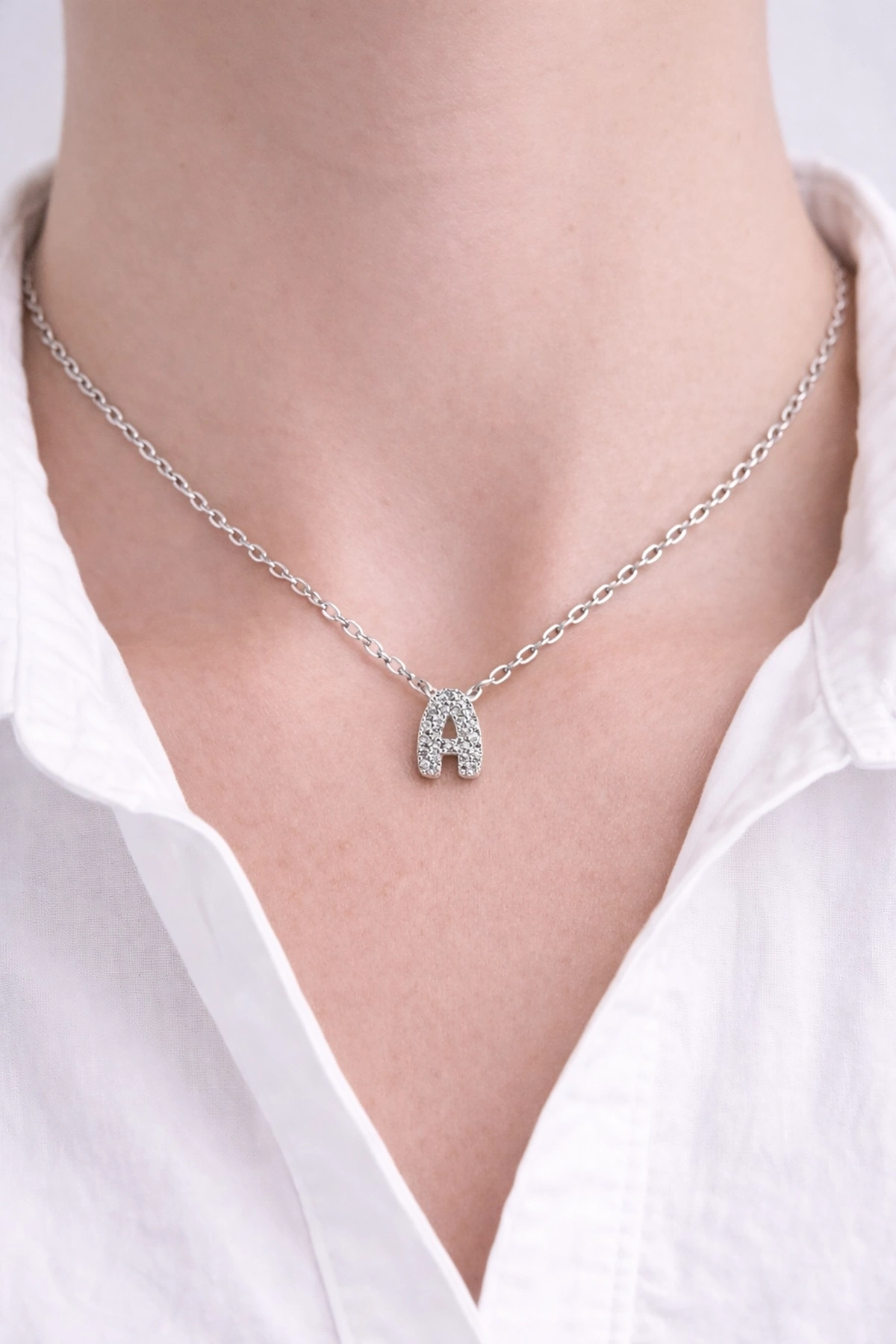 Gümüş Renk Taş Detaylı A Harfli Mini Çelik Kolye