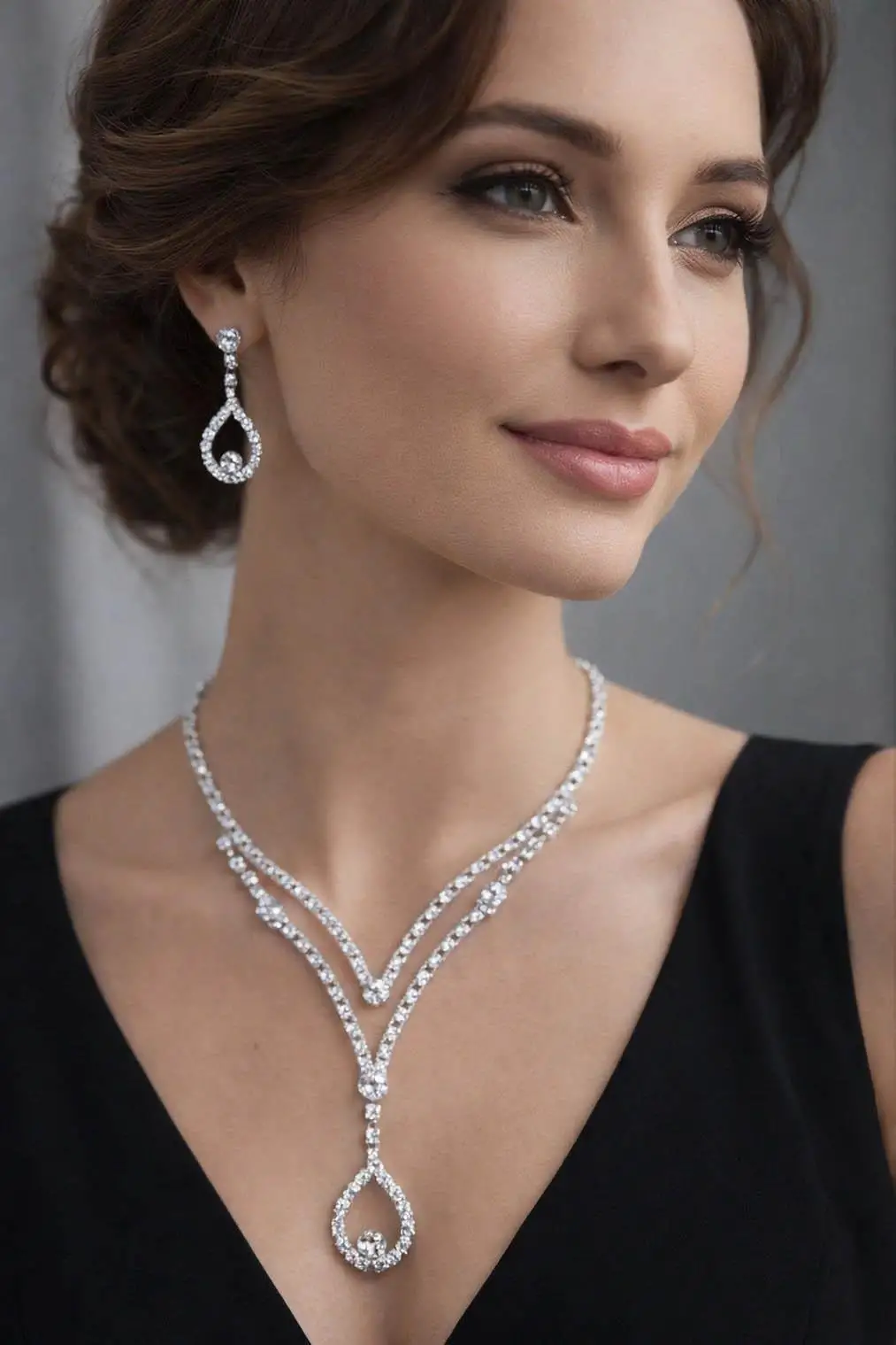 Gümüş Renk Taş Detaylı Abiye Set