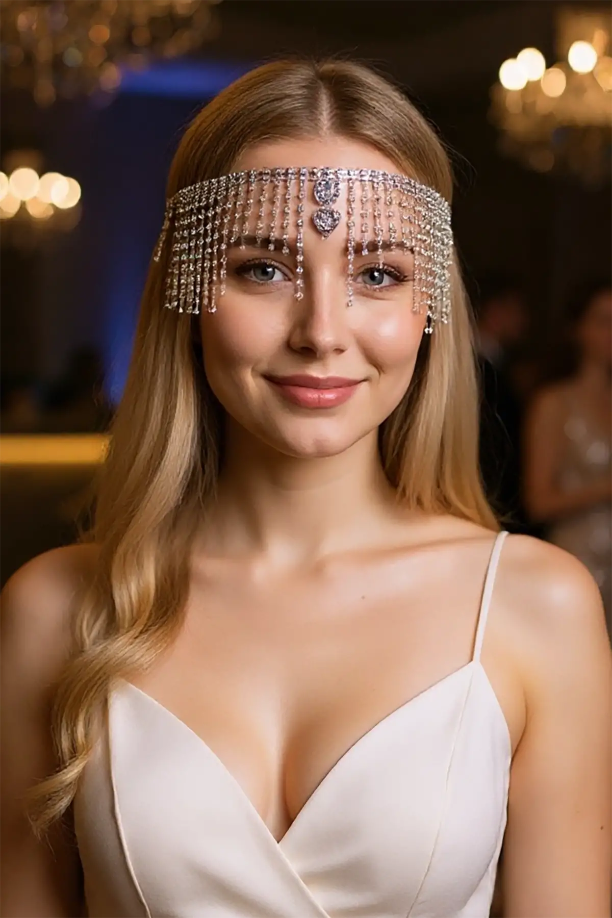Gümüş Renk Taş Detaylı Alınlık/Kına Aksesuarı