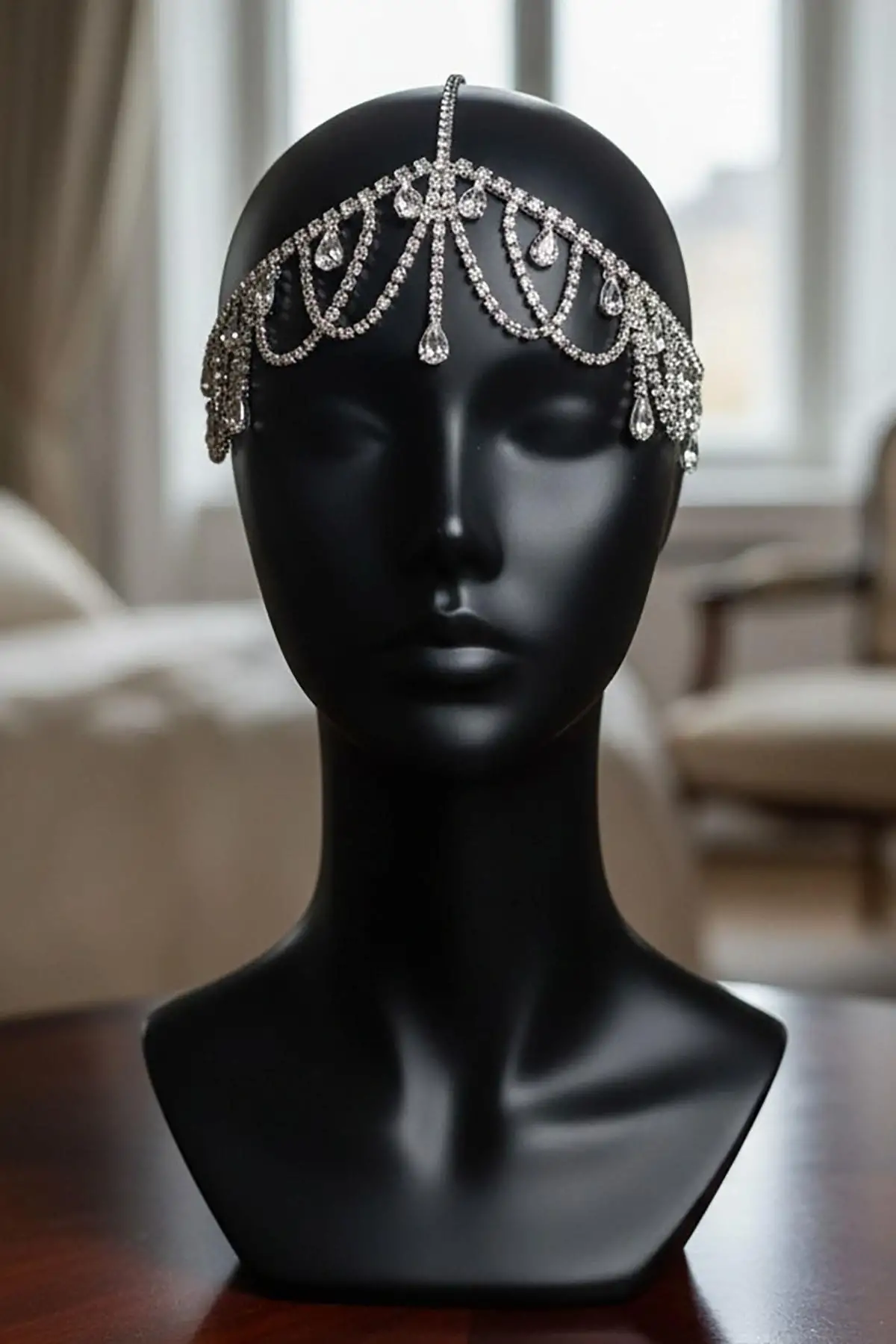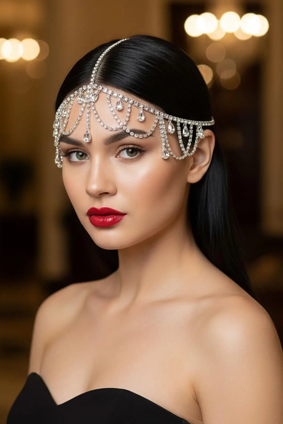 Gümüş Renk Taş Detaylı Alınlık/Kına Aksesuarı