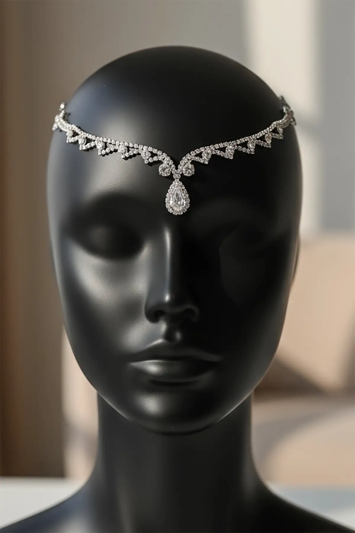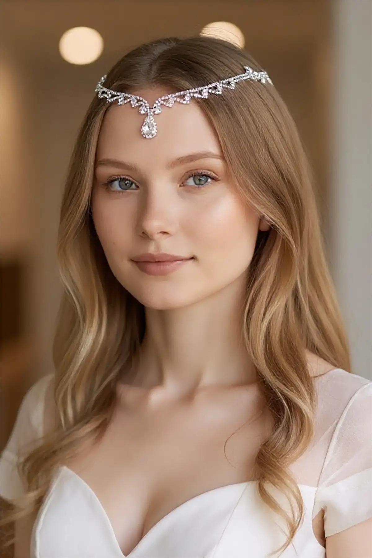 Gümüş Renk Taş Detaylı Alınlık/Kına Aksesuarı