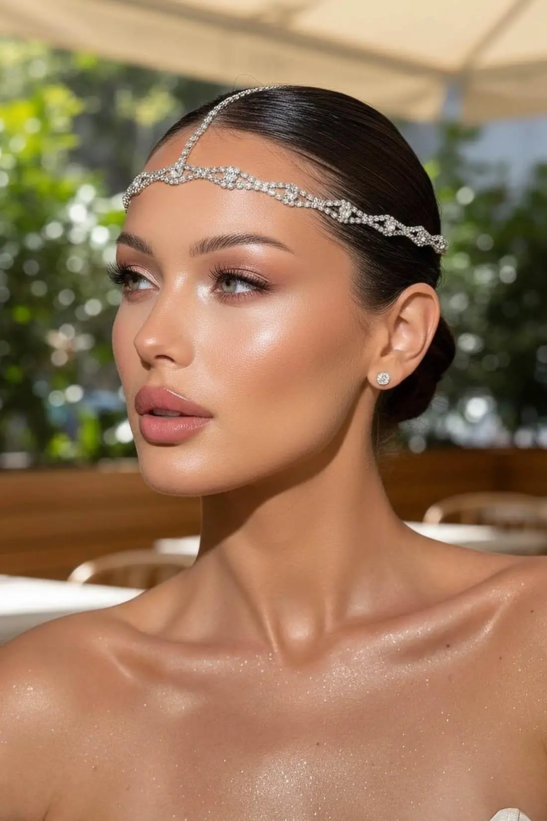 Gümüş Renk Taş Detaylı Alınlık/Kına Aksesuarı