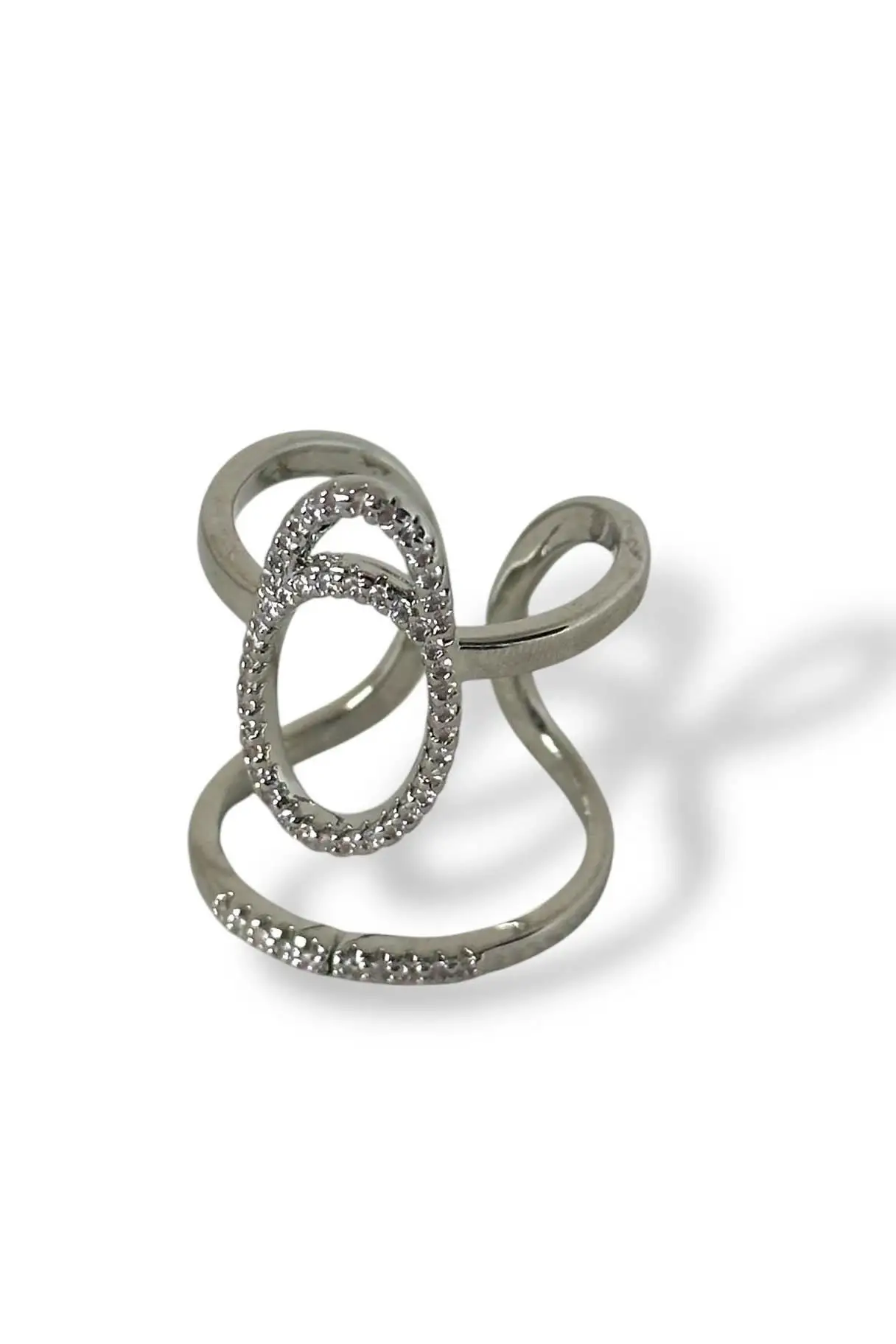 Gümüş Renk Taş Detaylı Ayarlanabilir Çelik Yüzük