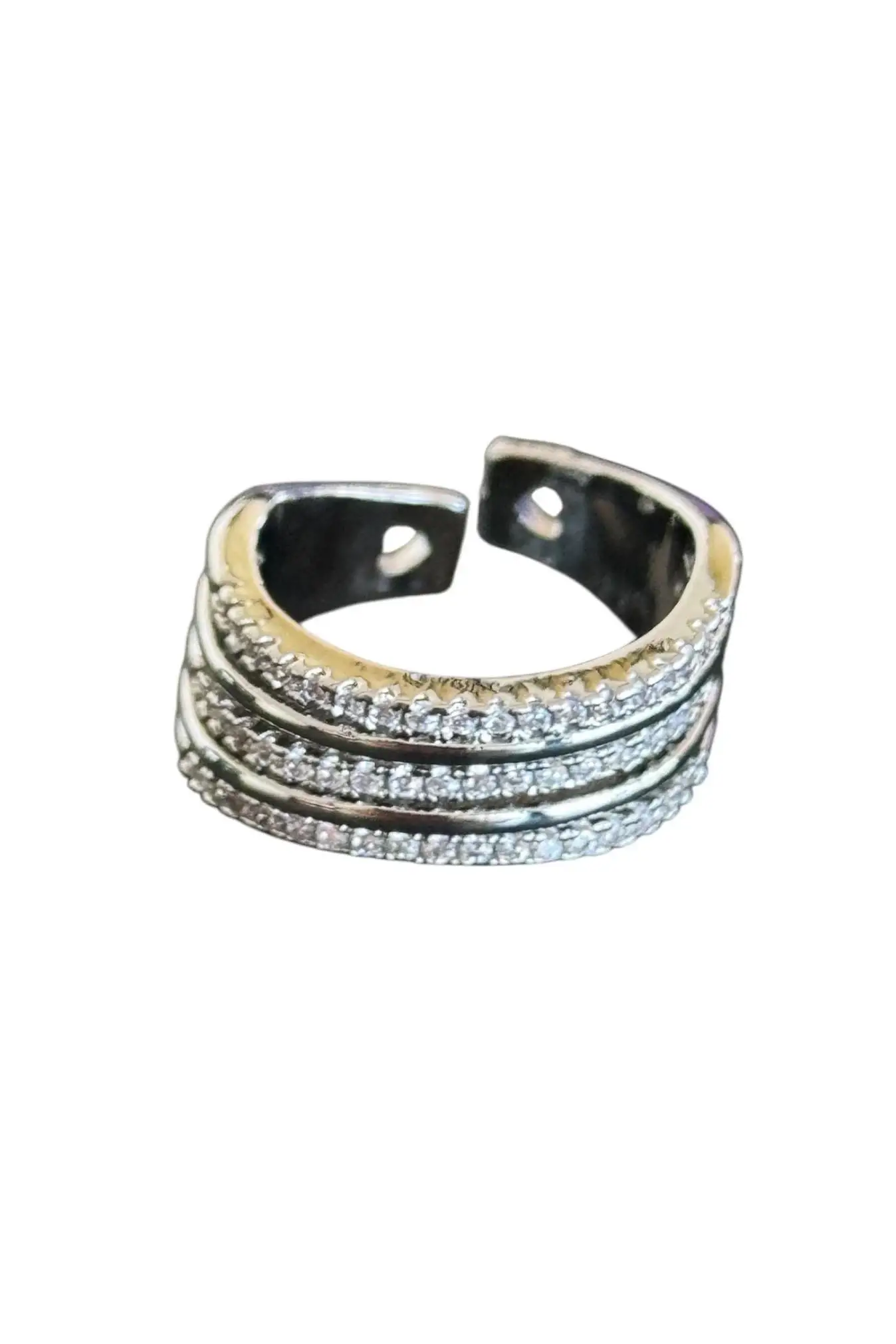 Gümüş Renk Taş Detaylı Ayarlanabilir Çelik Yüzük