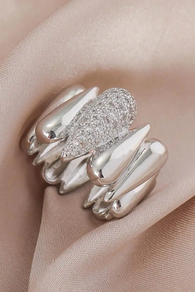 Gümüş Renk Taş Detaylı Ayarlanabilir Çelik Yüzük