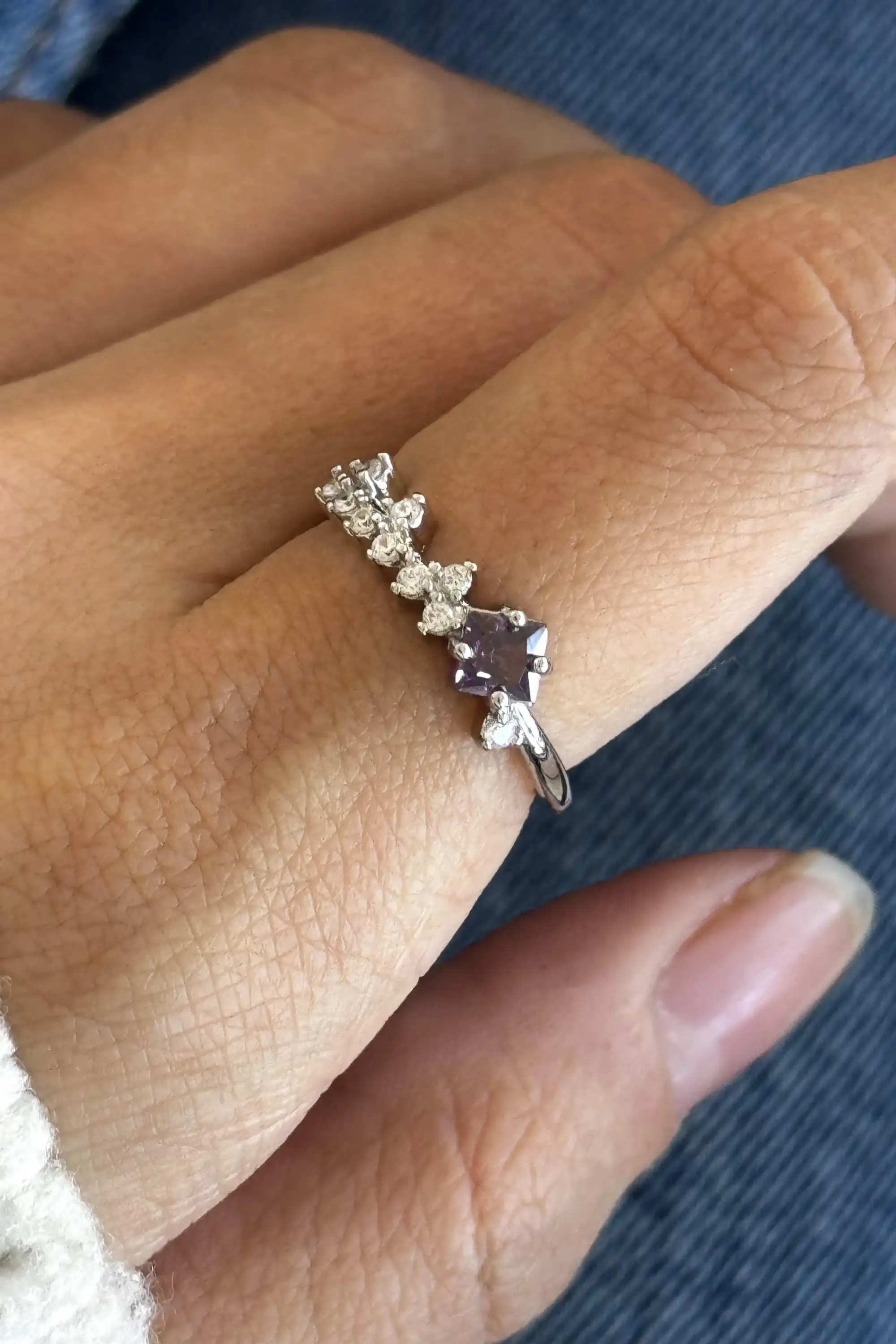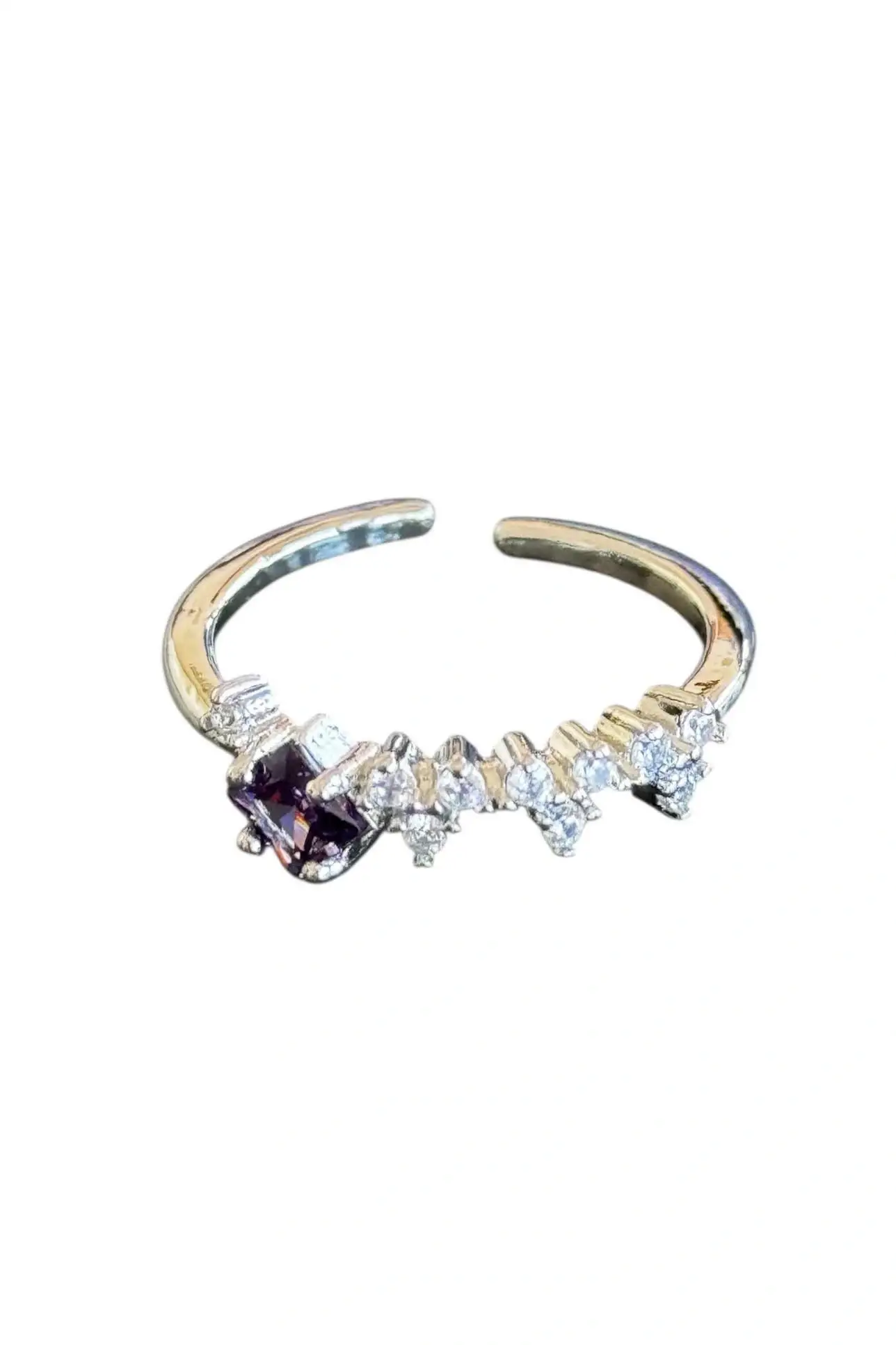 Gümüş Renk Taş Detaylı Ayarlanabilir Çelik Yüzük