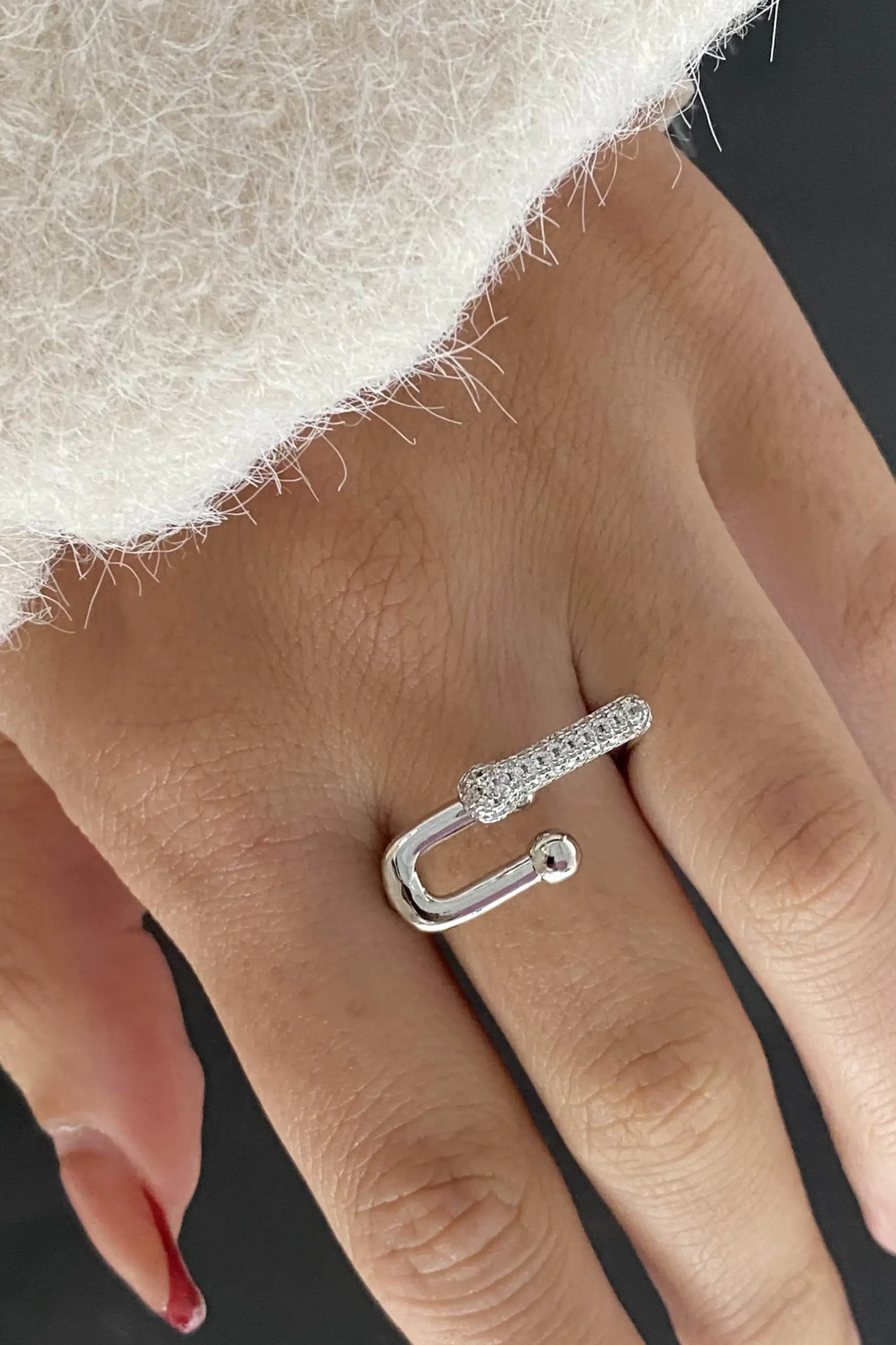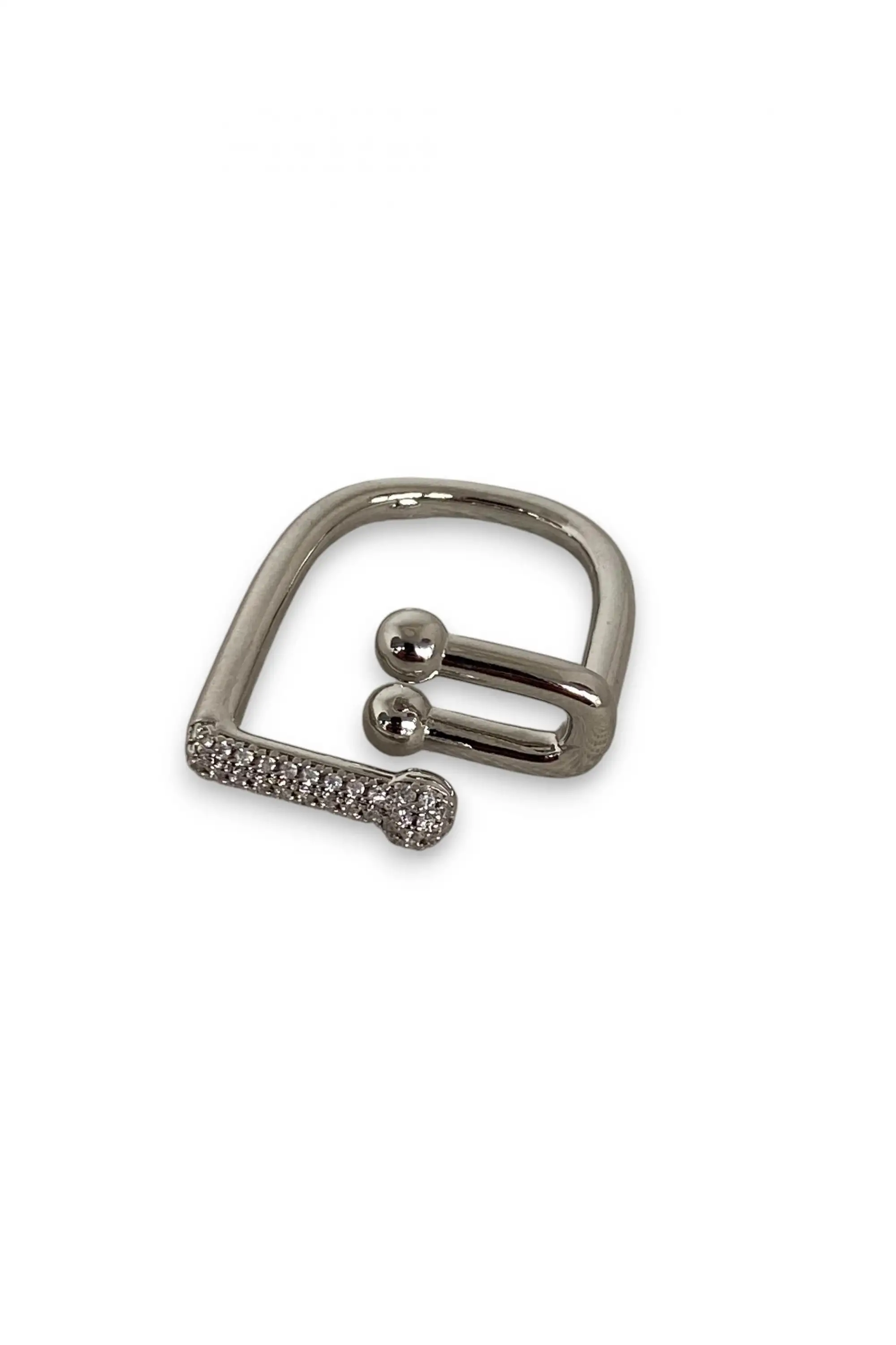 Gümüş Renk Taş Detaylı Ayarlanabilir Çelik Yüzük