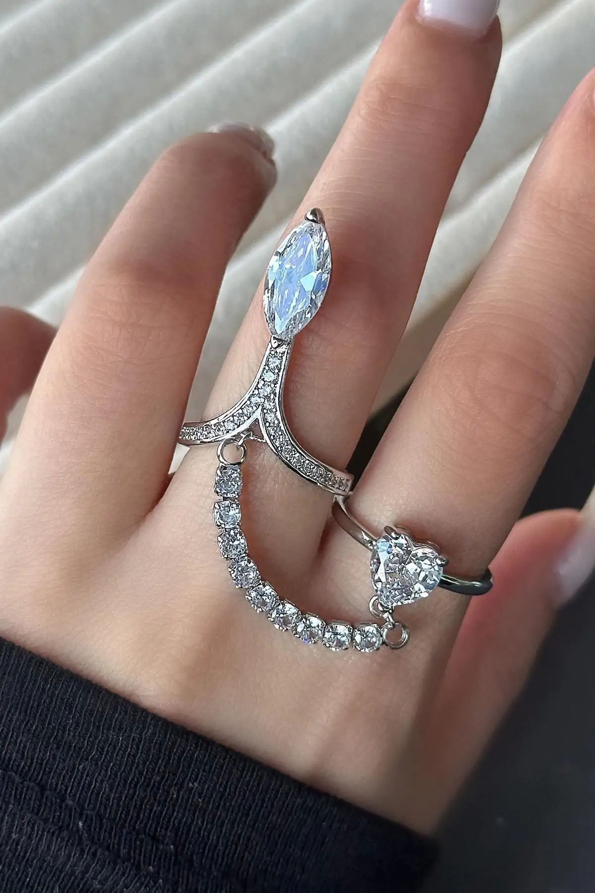 İncelemekte olduğunuz yüzük ayarlamalıdır, kullanmak istediğiniz parmağınıza göre sıkıştırabilirsiniz.