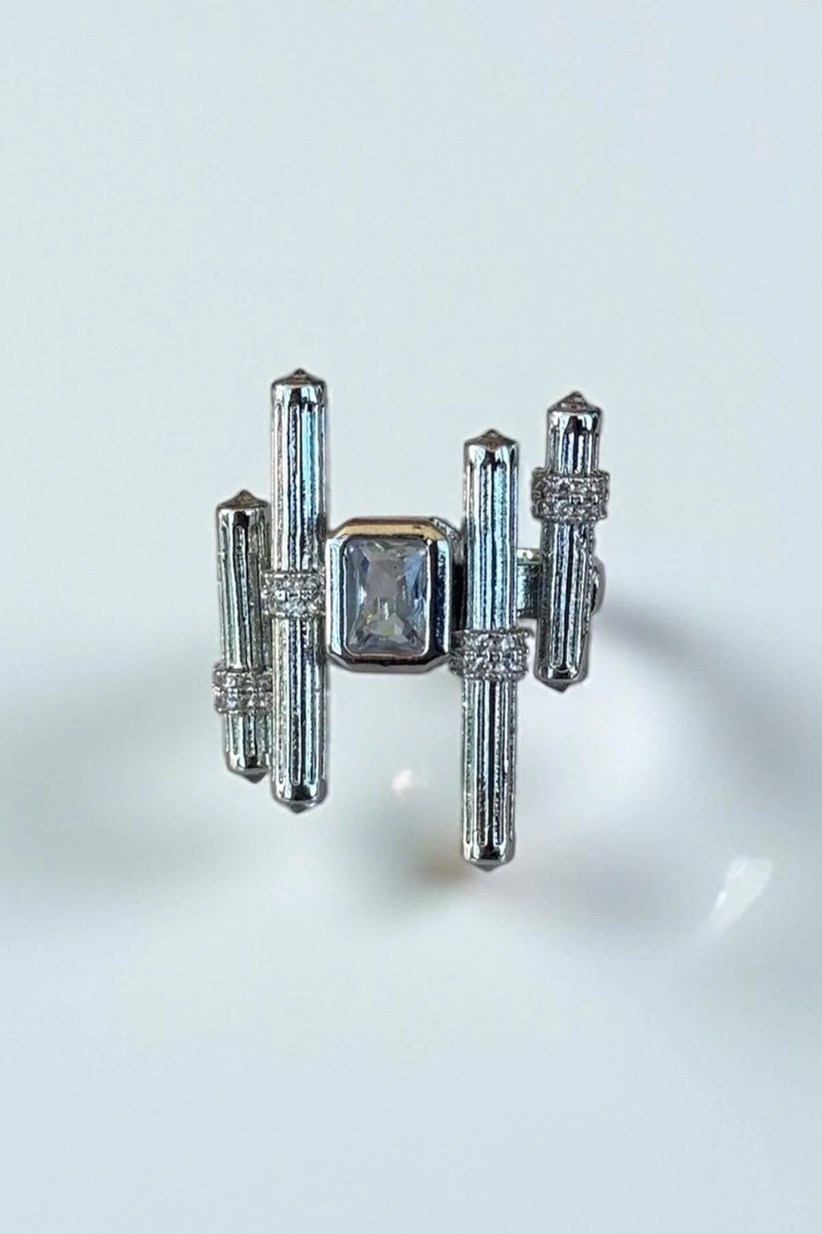 Gümüş Renk Taş Detaylı Ayarlanabilir YSX Yüzük