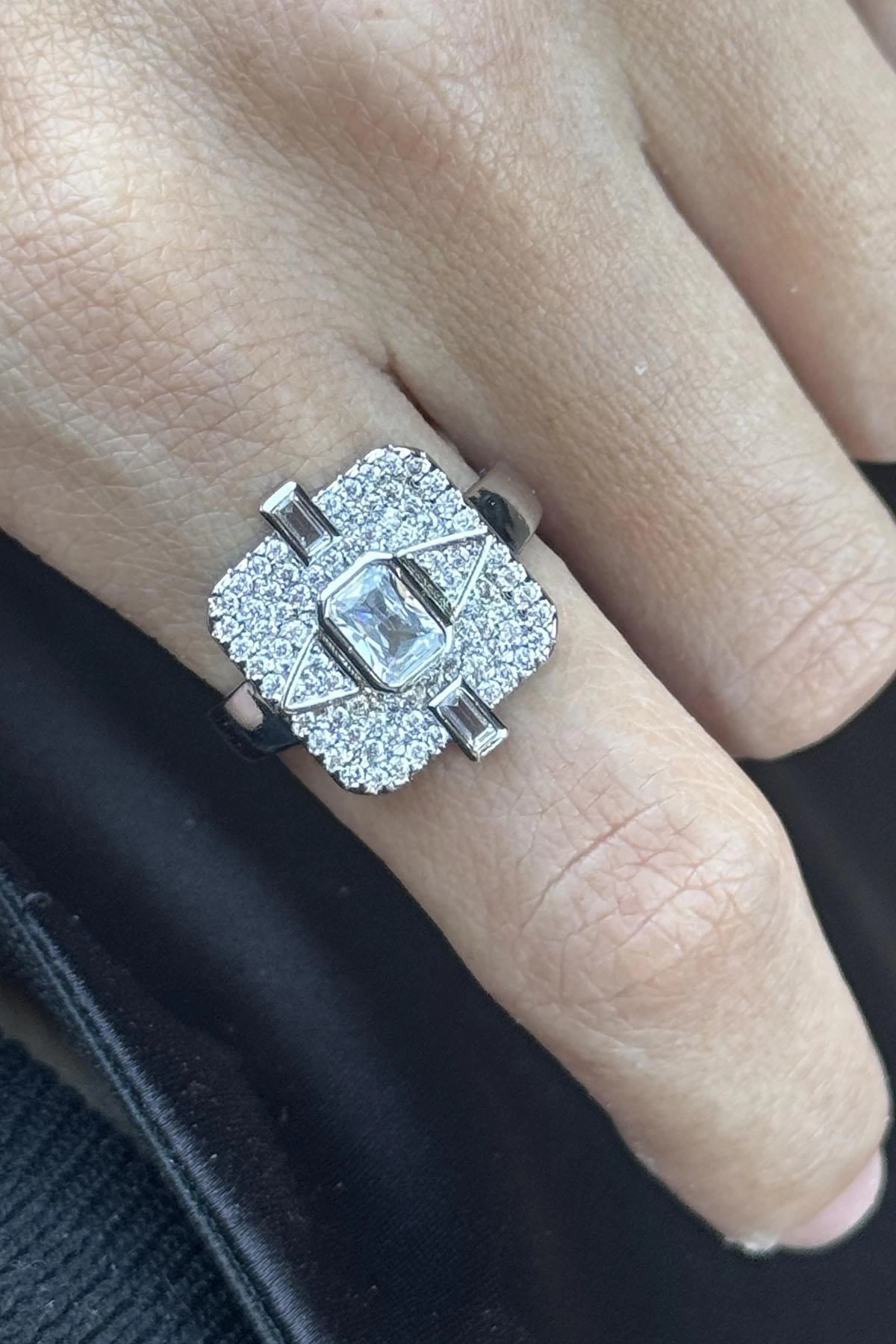 Gümüş Renk Taş Detaylı Ayarlanabilir YSX Yüzük