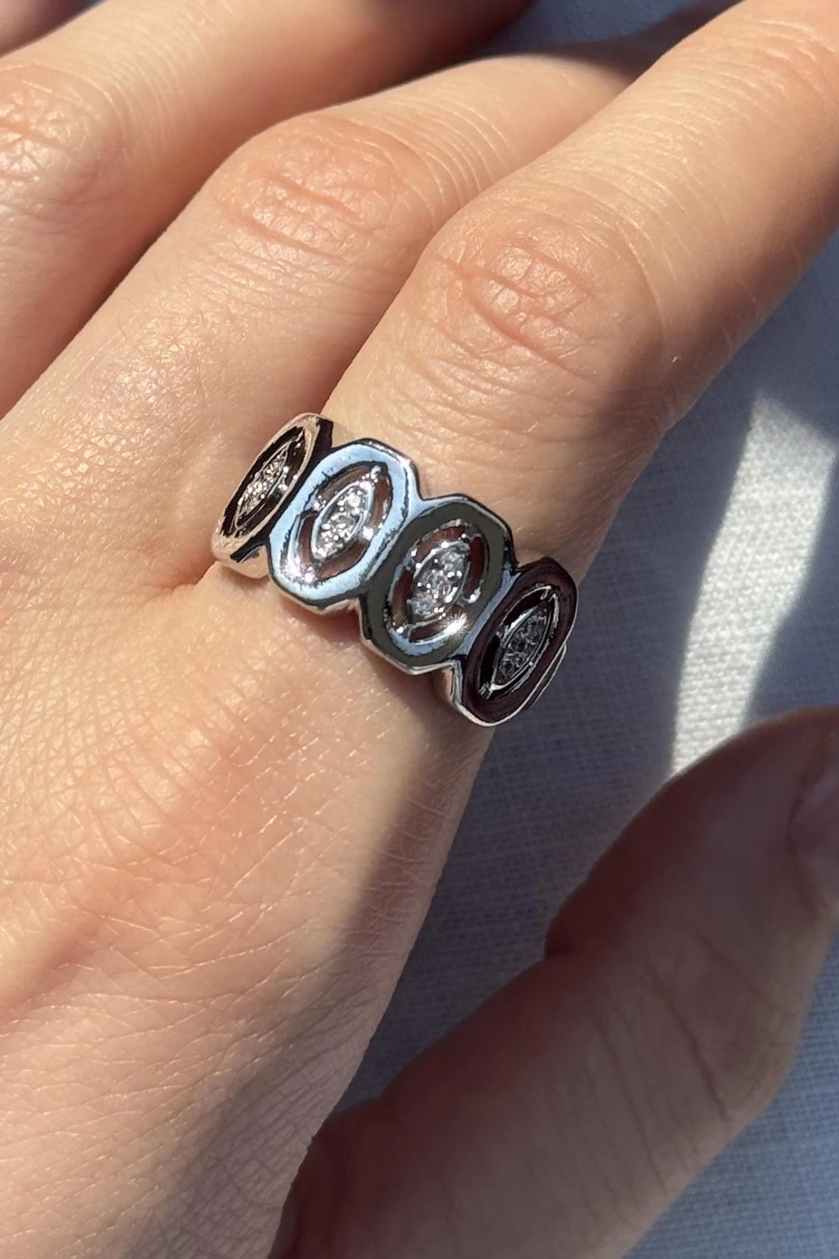 Gümüş Renk Taş Detaylı Ayarlanabilir Yüzük