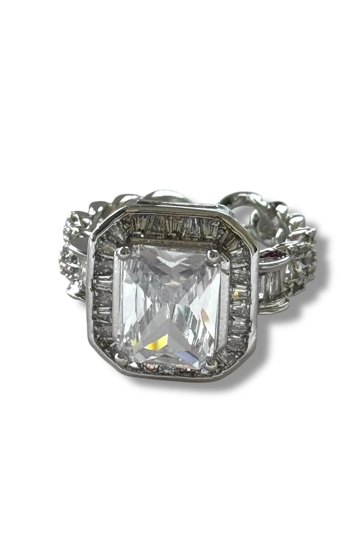 Gümüş Renk Taş Detaylı Ayarlanabilir Yüzük
