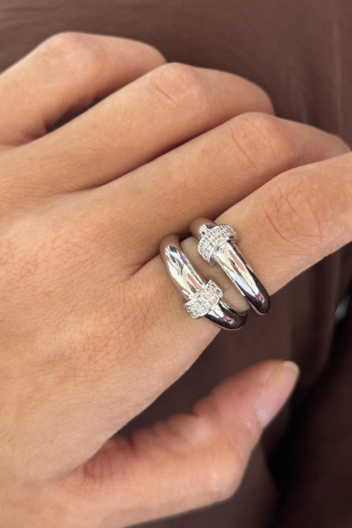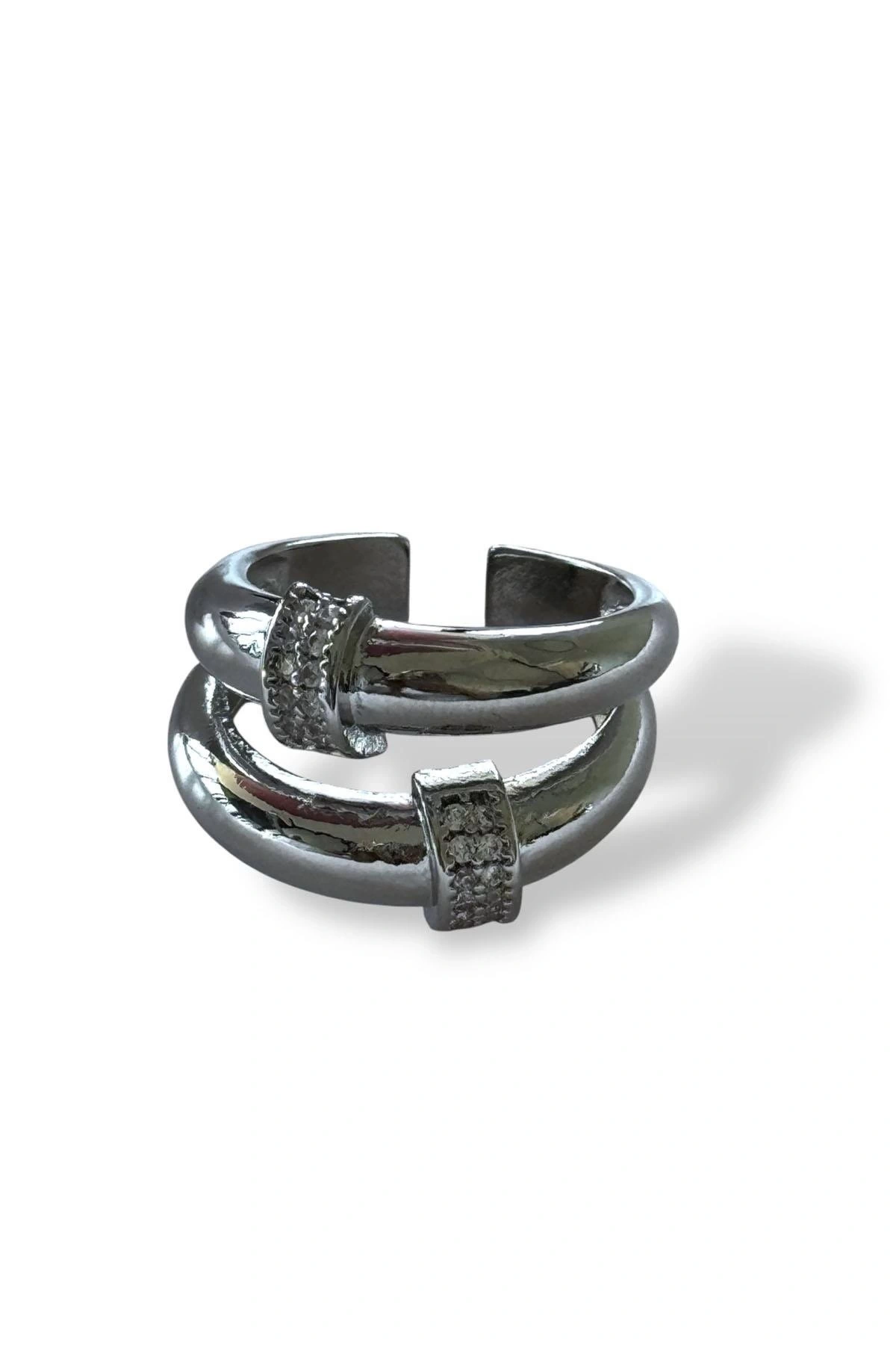 Gümüş Renk Taş Detaylı Ayarlanabilir Yüzük