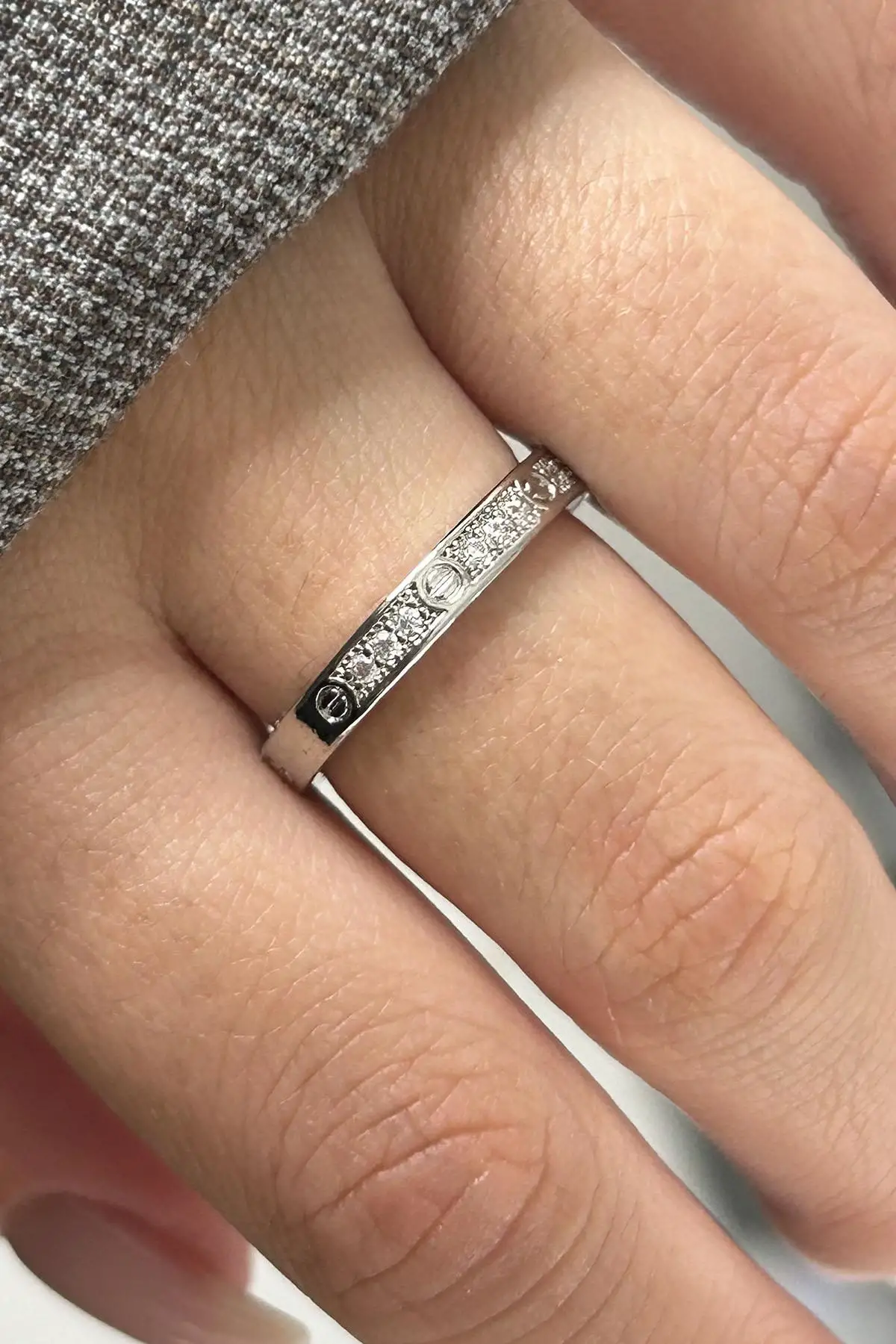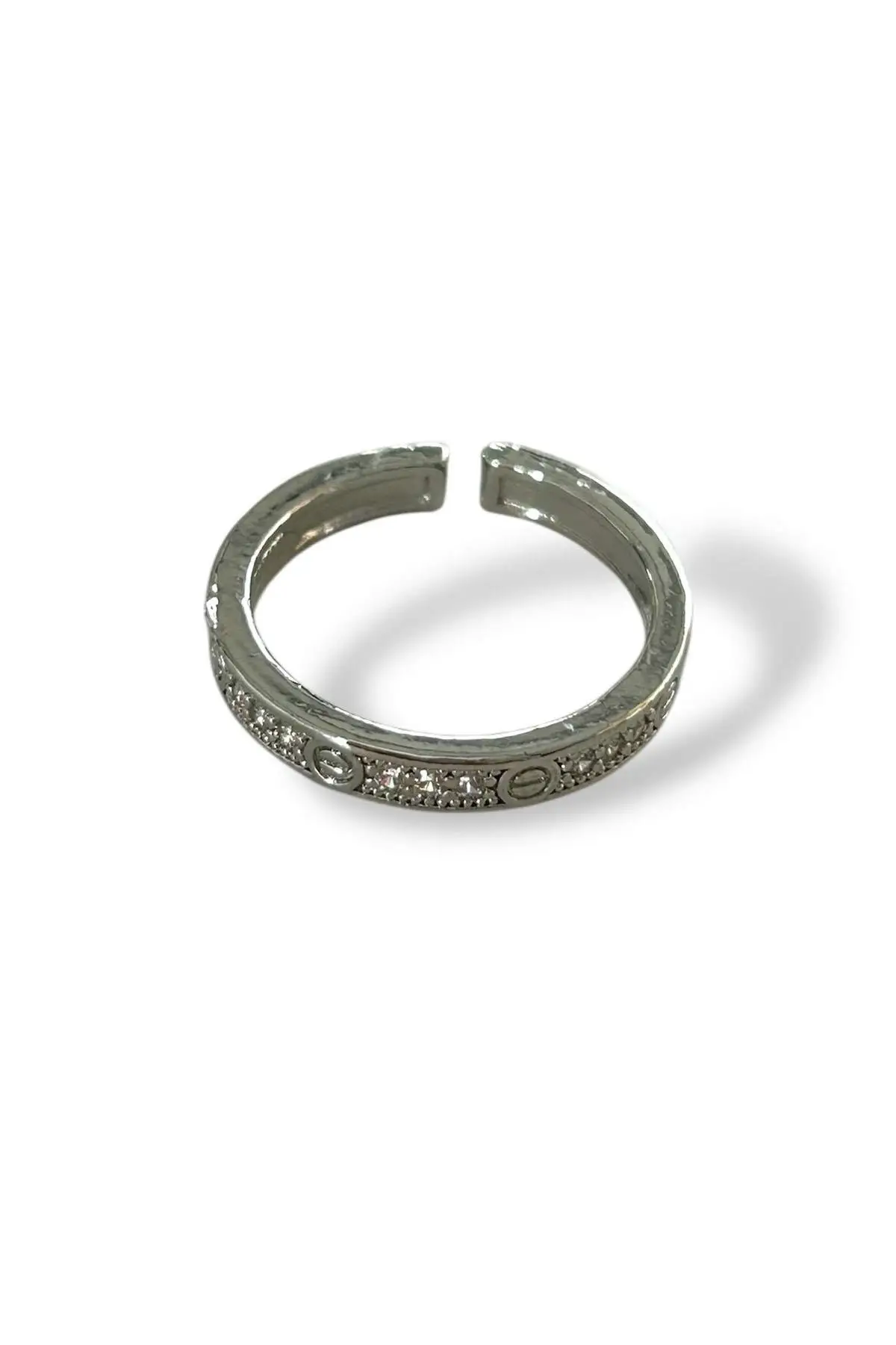 Gümüş Renk Taş Detaylı Ayarlanabilir Yüzük