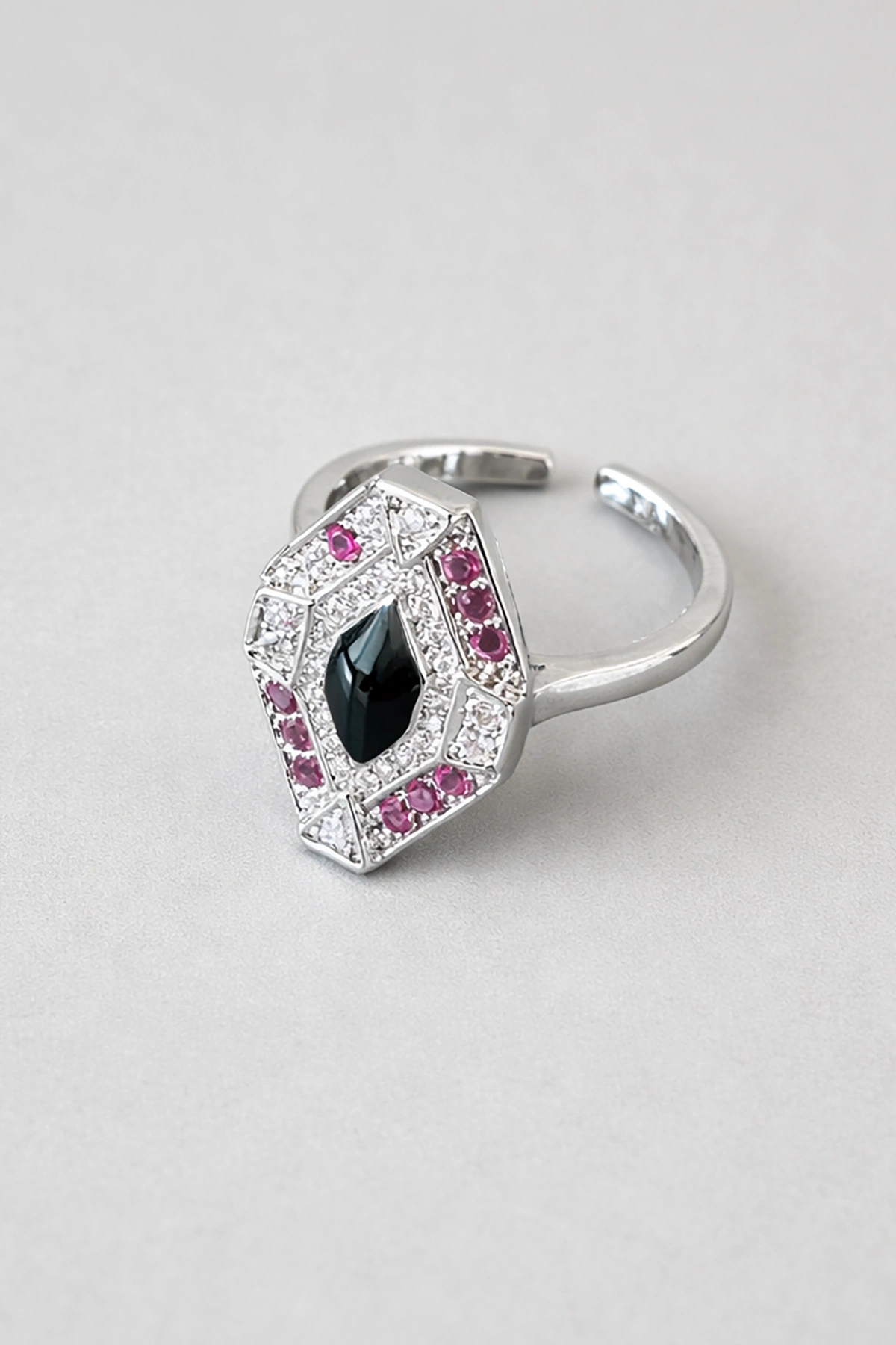 Gümüş Renk Taş Detaylı Ayarlanabilir Yüzük