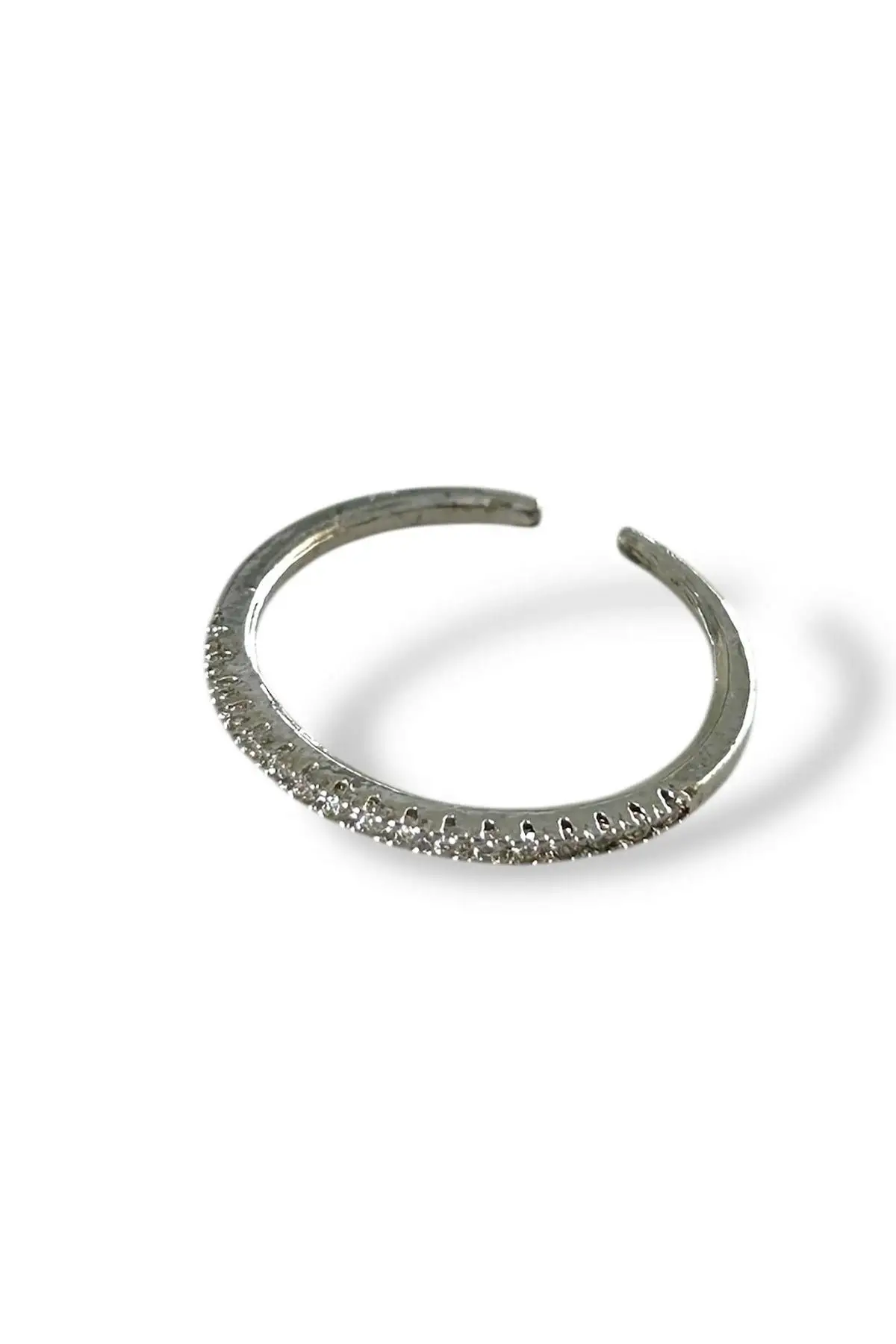 Gümüş Renk Taş Detaylı Ayarlanabilir Yüzük