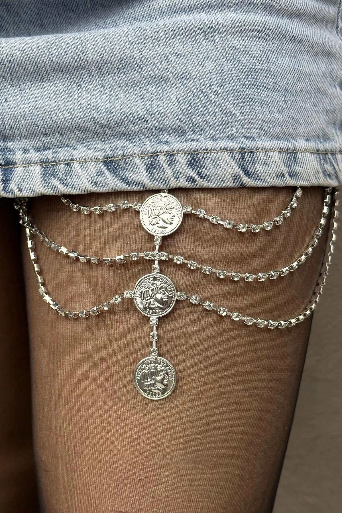 Gümüş Renk Taş Detaylı Bacak Aksesuarı