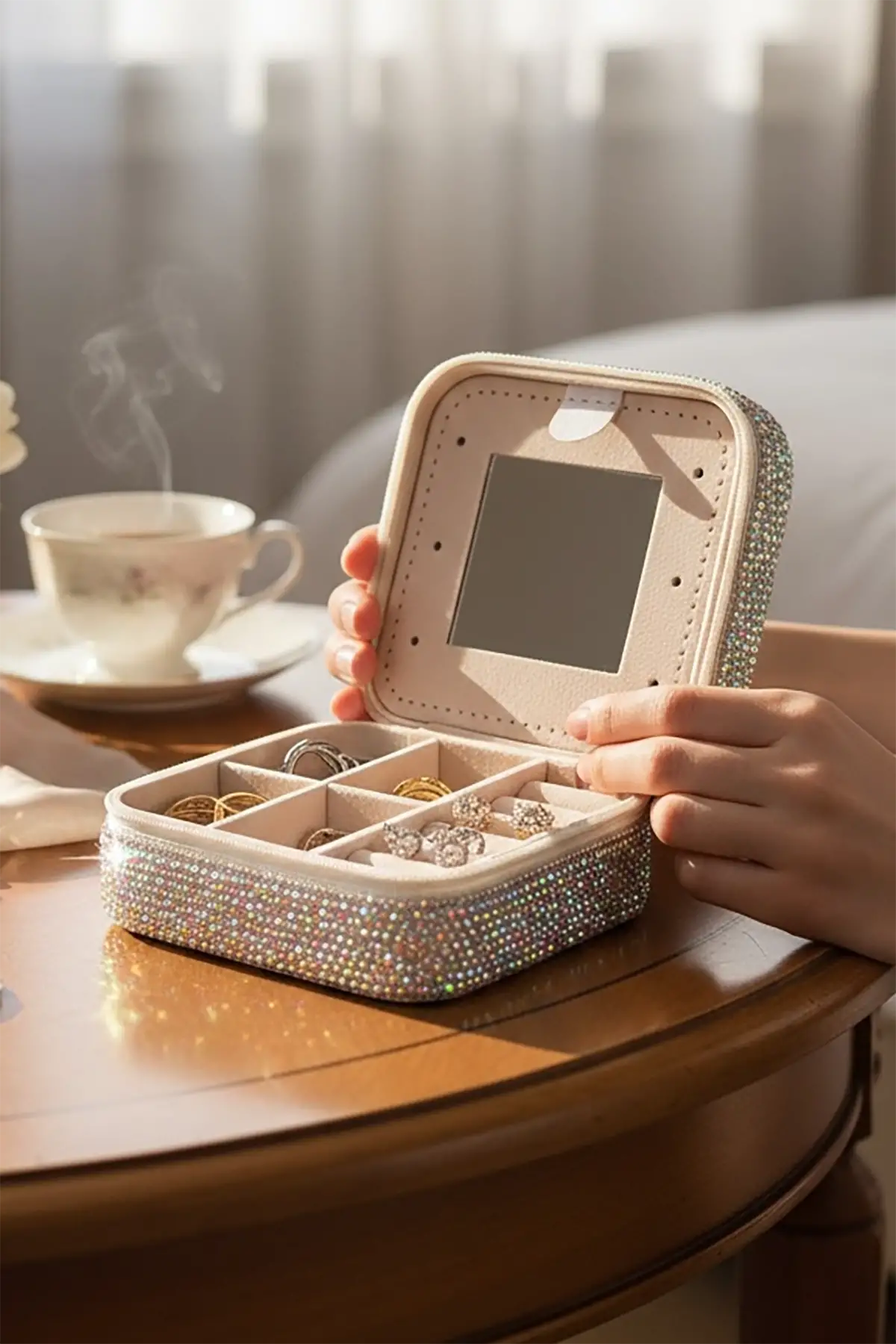 Gümüş Renk Taş Detaylı Çantalı Takı Kutusu