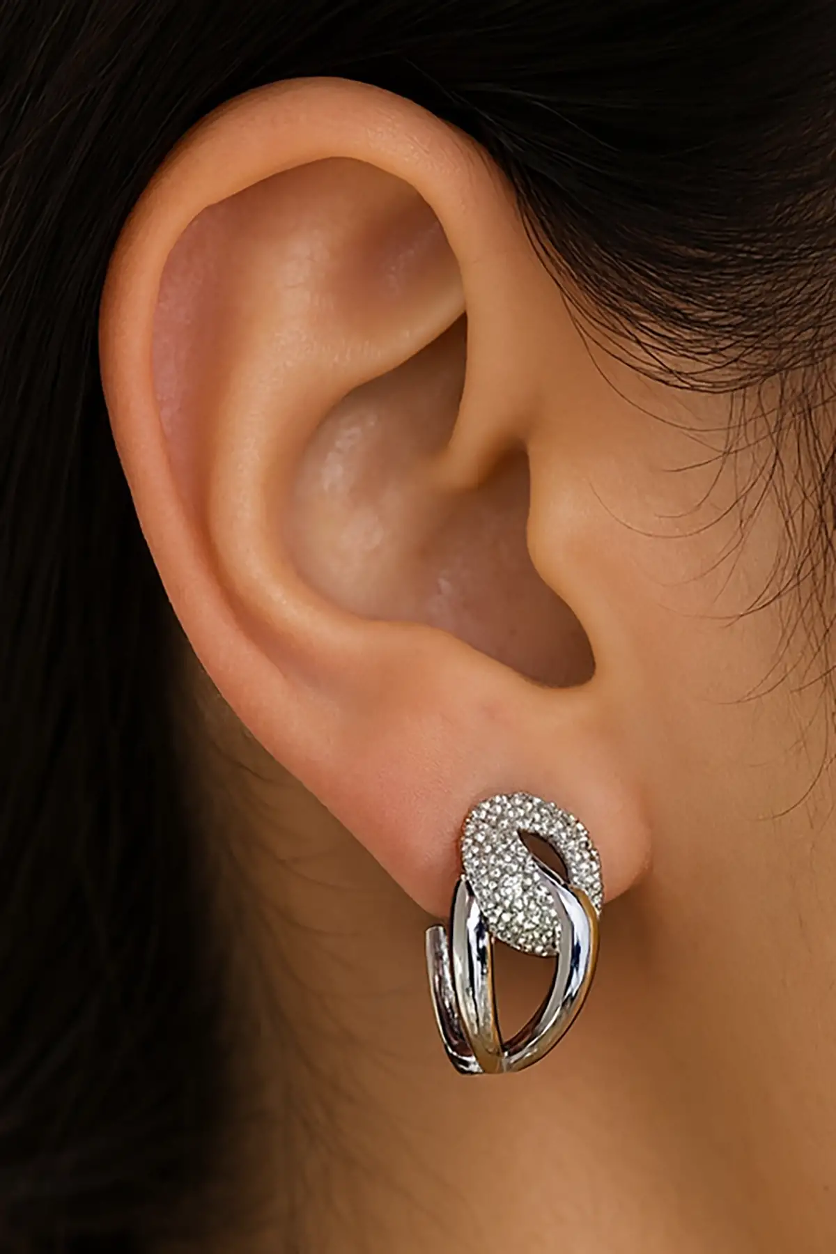 Gümüş Renk Taş Detaylı Çelik Küpe (Çift)
