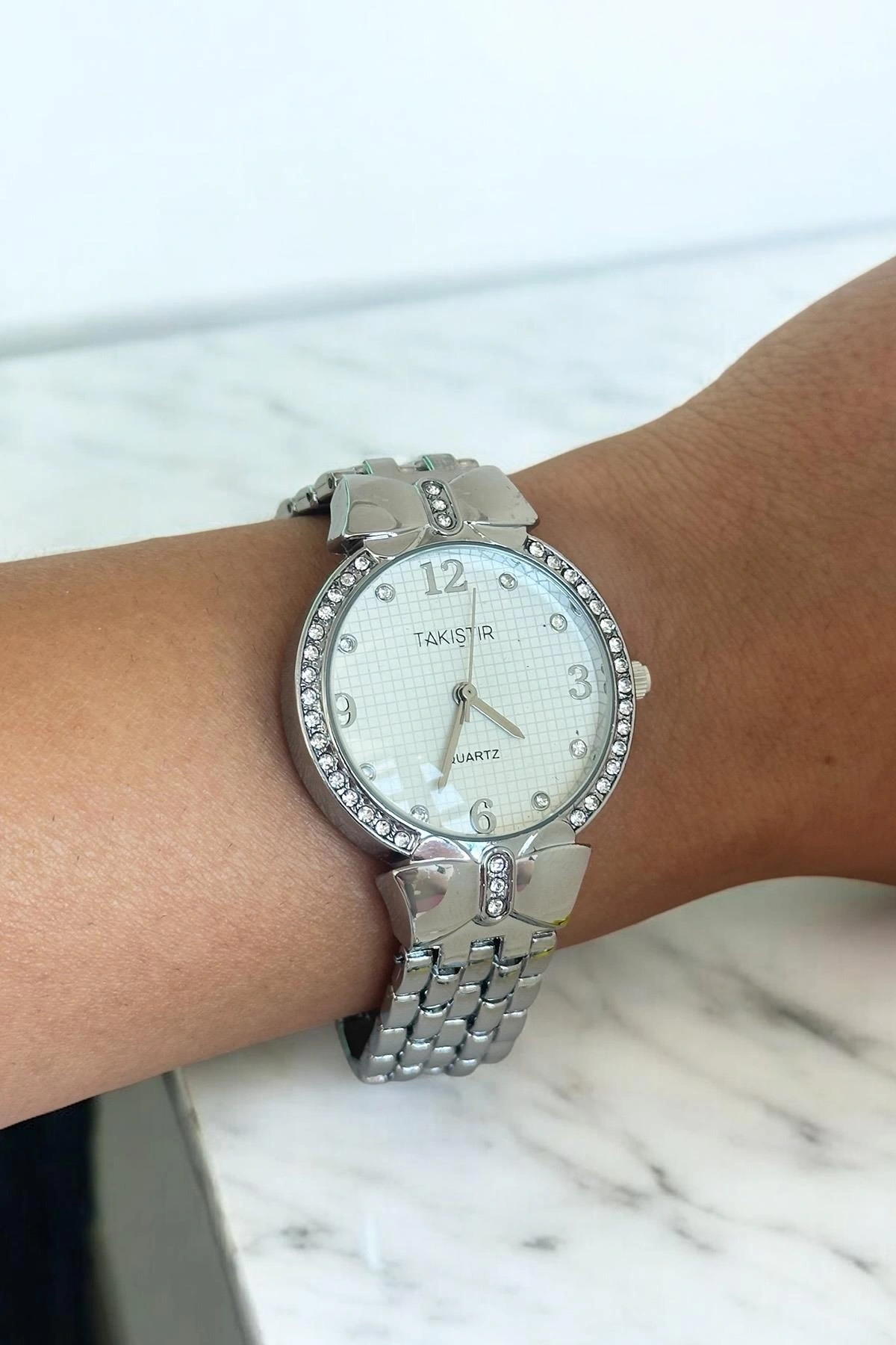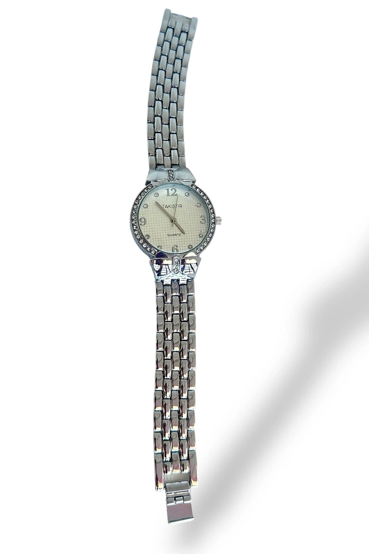 Gümüş Renk Taş Detaylı Çelik Kordonlu Kadın Saat