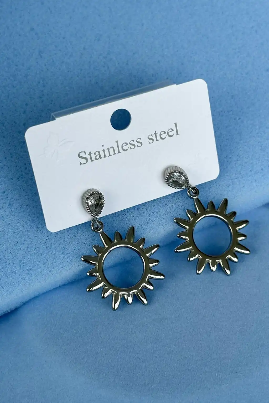 Gümüş Renk Taş Detaylı Çelik Küpe (Çift)