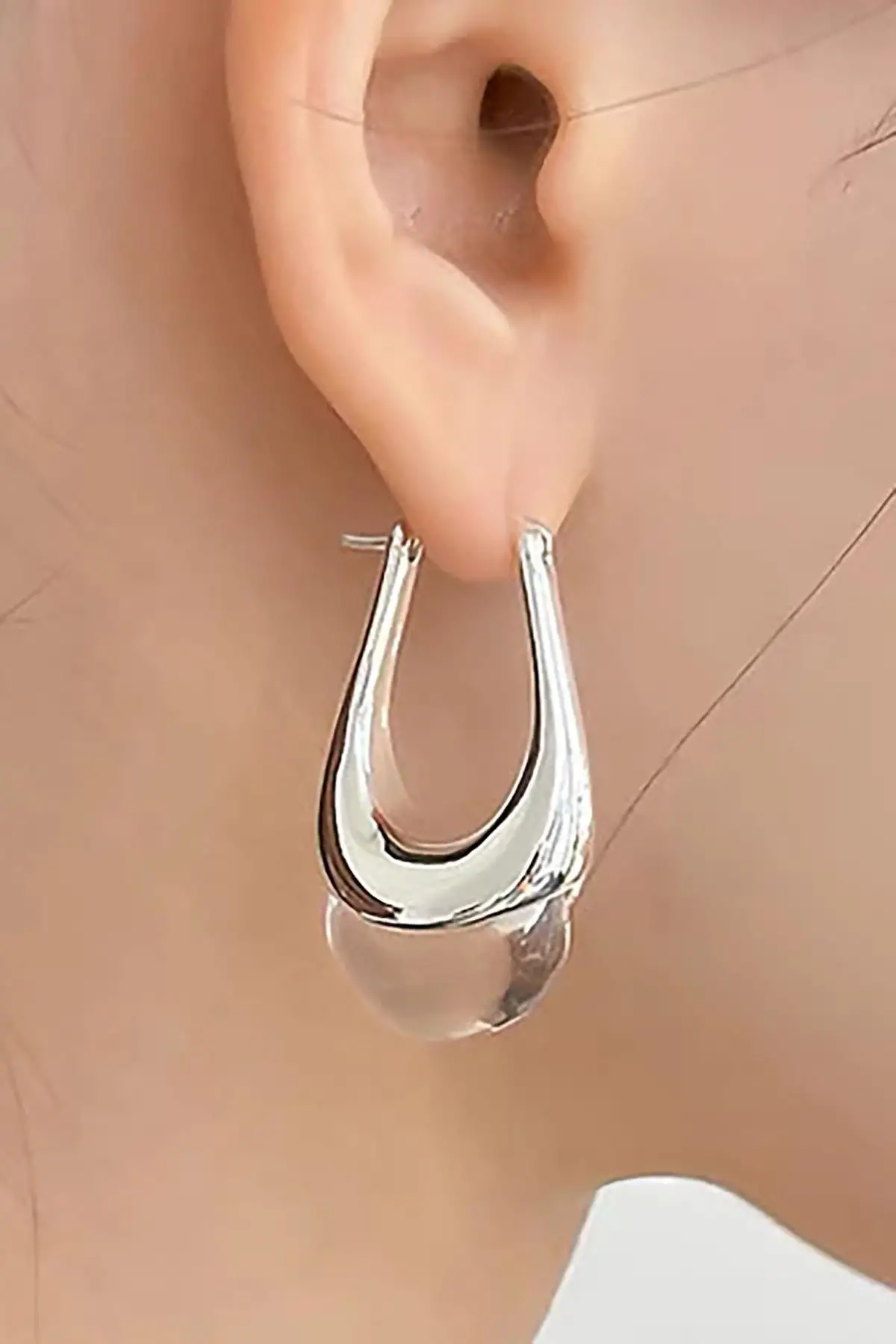 Gümüş Renk Halka Detaylı Çelik Küpe (Çift)