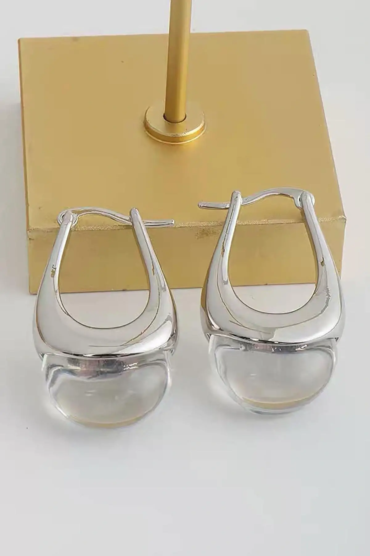 Gümüş Renk Taş Detaylı Çelik Küpe (Çift)