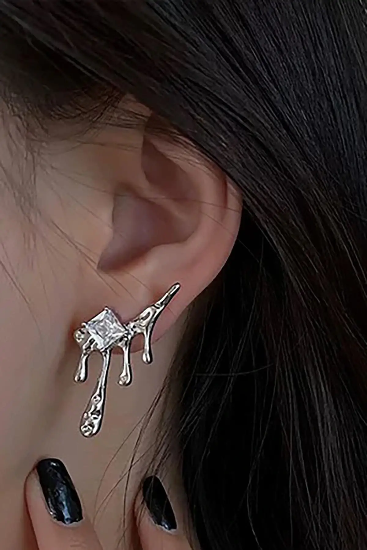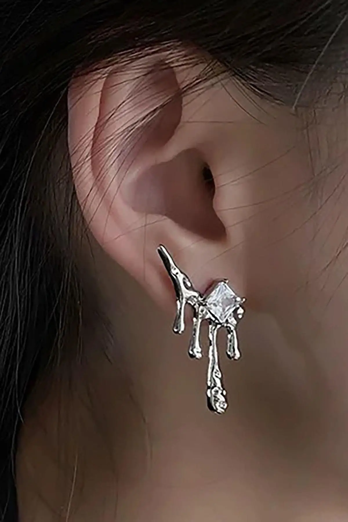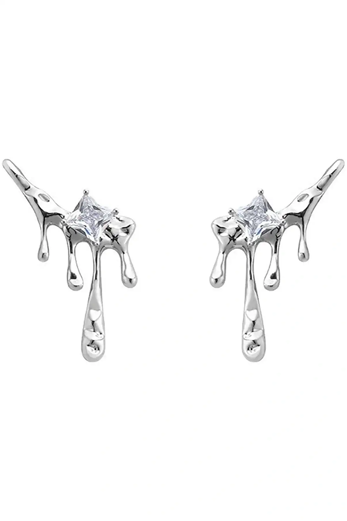 Gümüş Renk Taş Detaylı Çelik Küpe (Çift)