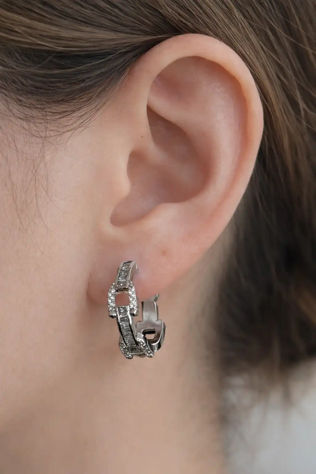 Gümüş Renk Taş Detaylı Çelik Küpe (Çift)