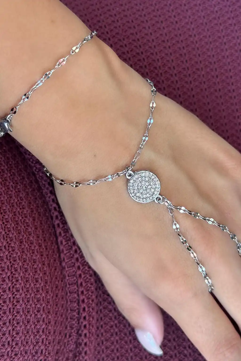 Gümüş Renk Ay Ve Yıldız Figürlü Taş Detaylı Çelik Şahmeran
