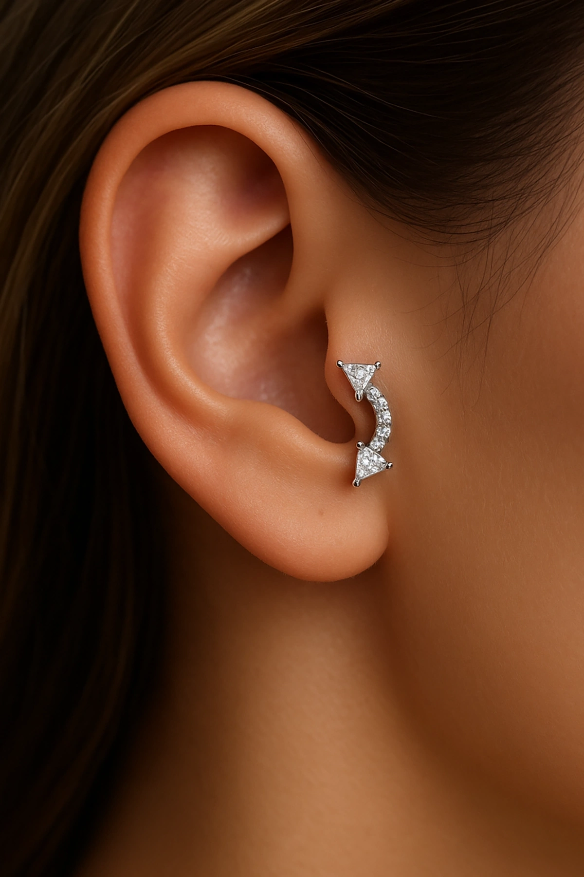 Gümüş Renk Taş Detaylı Çelik Tragus/Kıkırdak Küpe/Piercing (Tek)