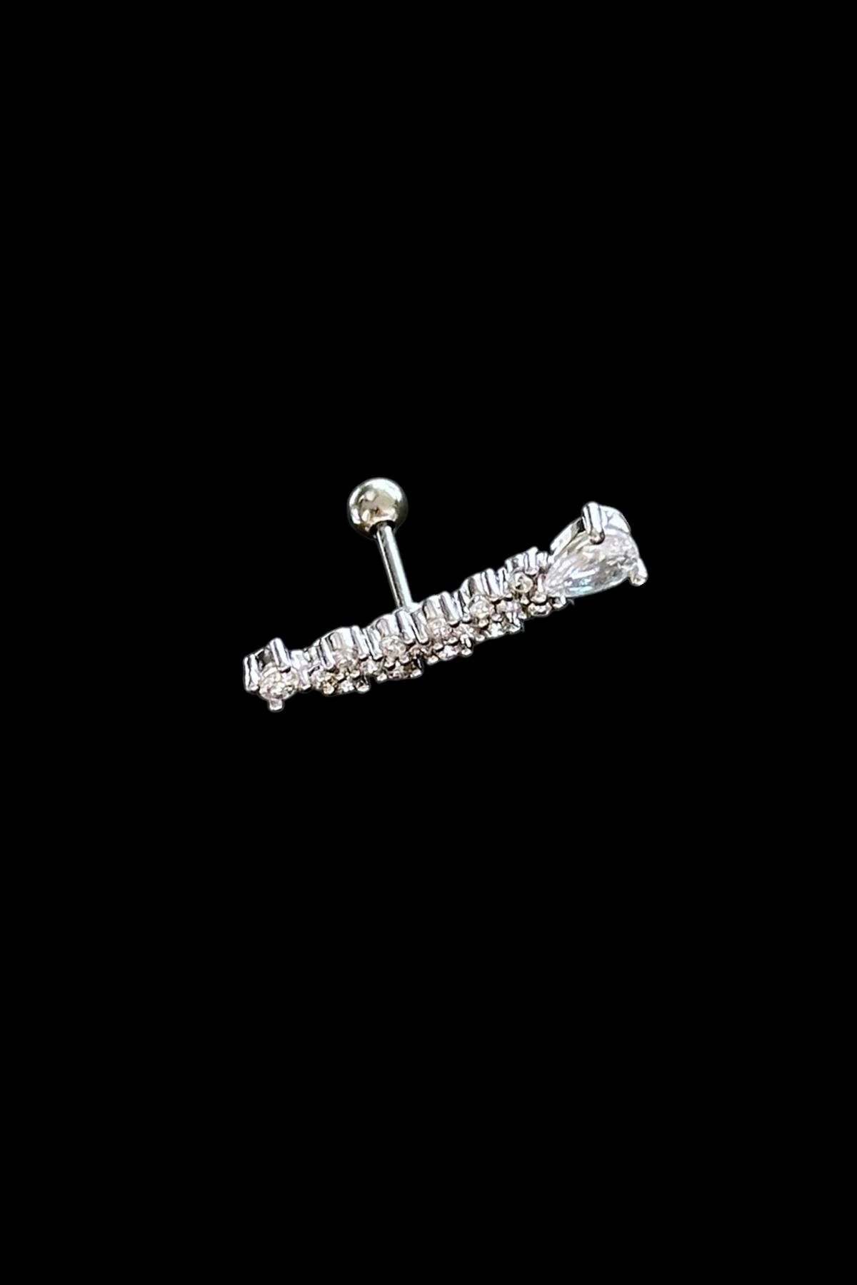 Gümüş Renk Taş Detaylı Çelik Tragus/Kıkırdak Küpe/Piercing (Tek)