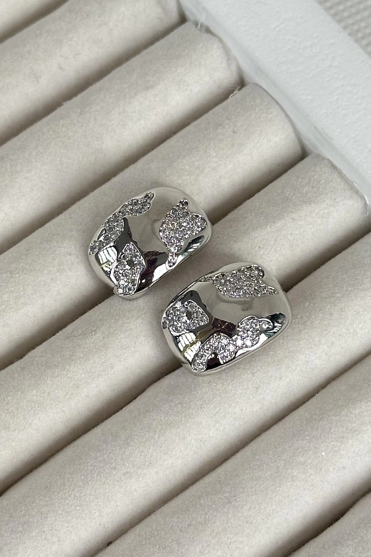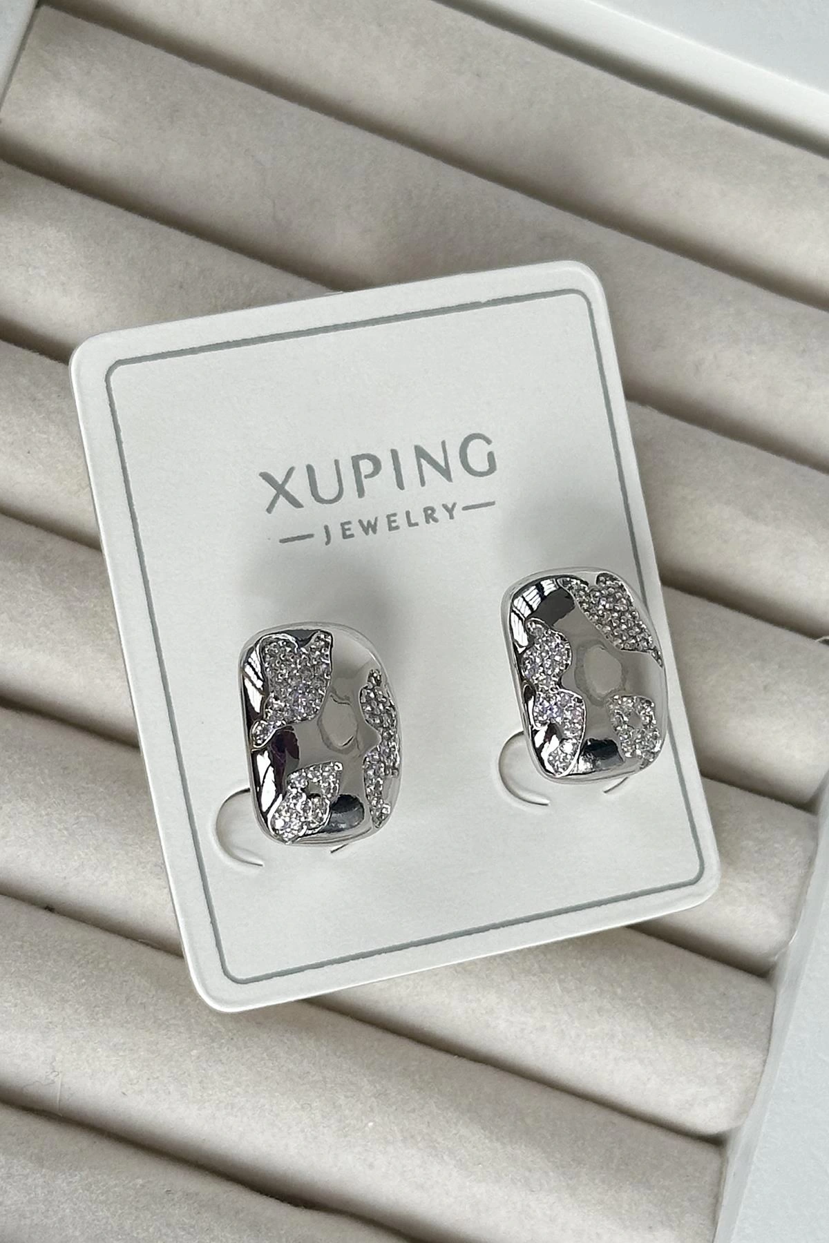 Gümüş Renk Taş Detaylı Çelik Xuping Küpe (Çift)