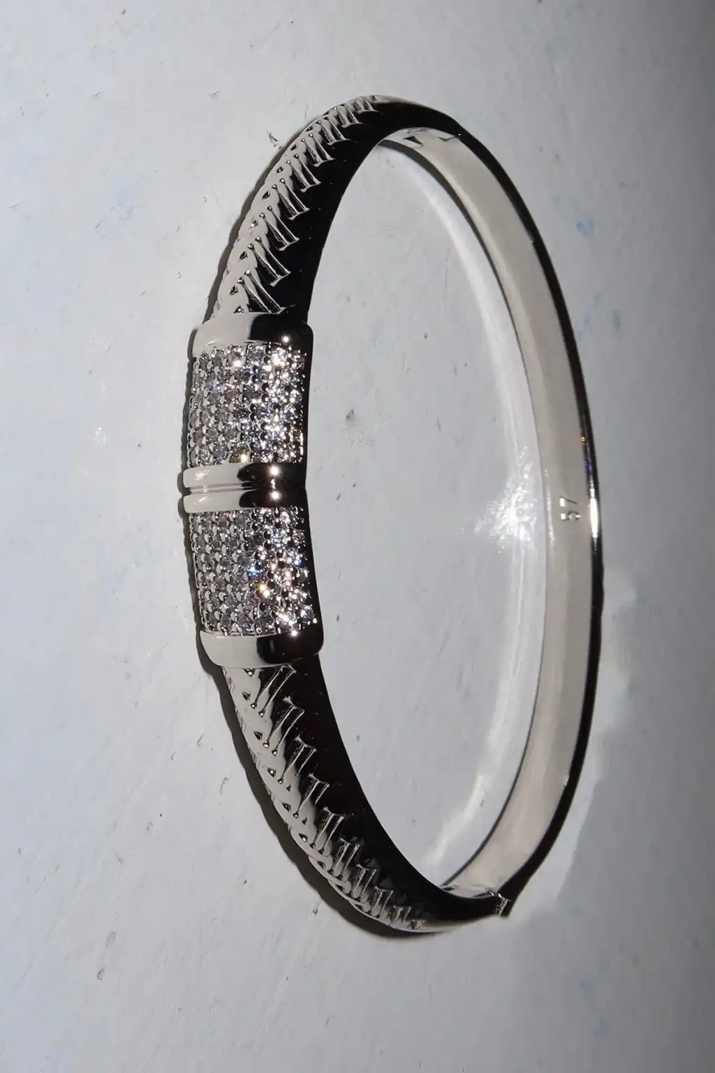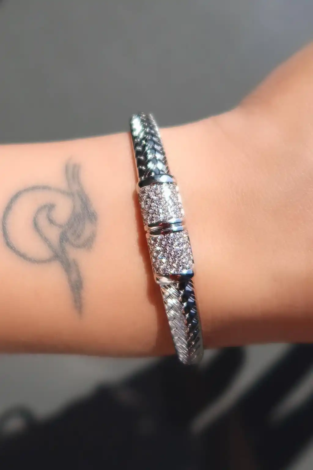Gümüş Renk Taş Detaylı Çelik Xupıng VİP Kelepçe Bileklik