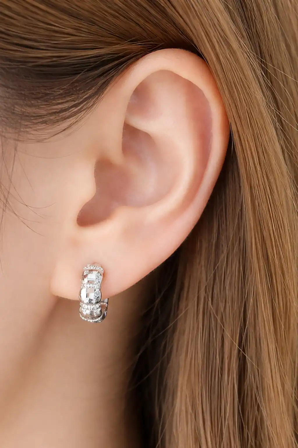 Gümüş Renk Taş Detaylı Çelik Xupıng VİP Earcuff (Çift)
