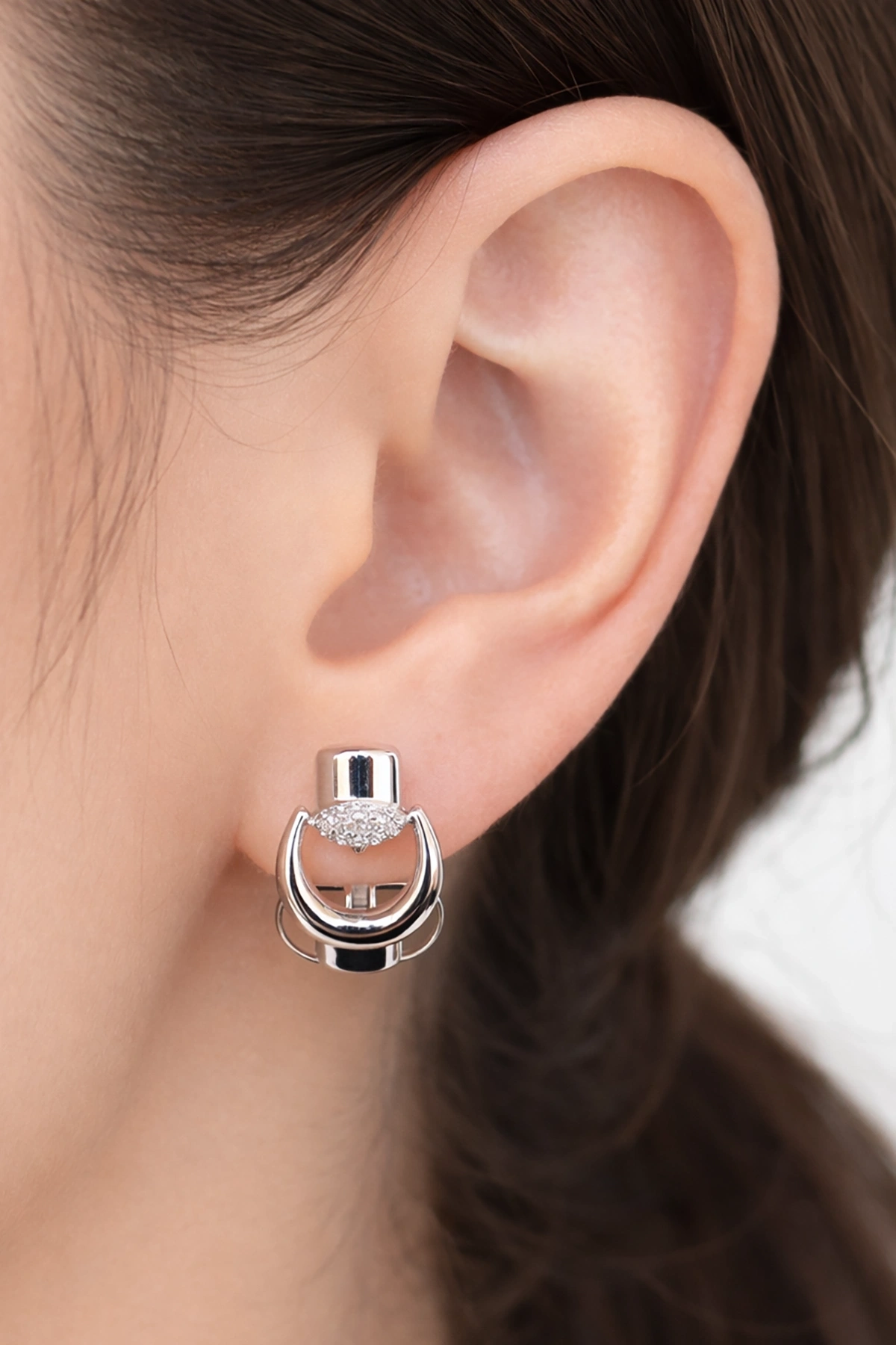 Gümüş Renk Taş Detaylı Çelik Xupıng VİP Küpe