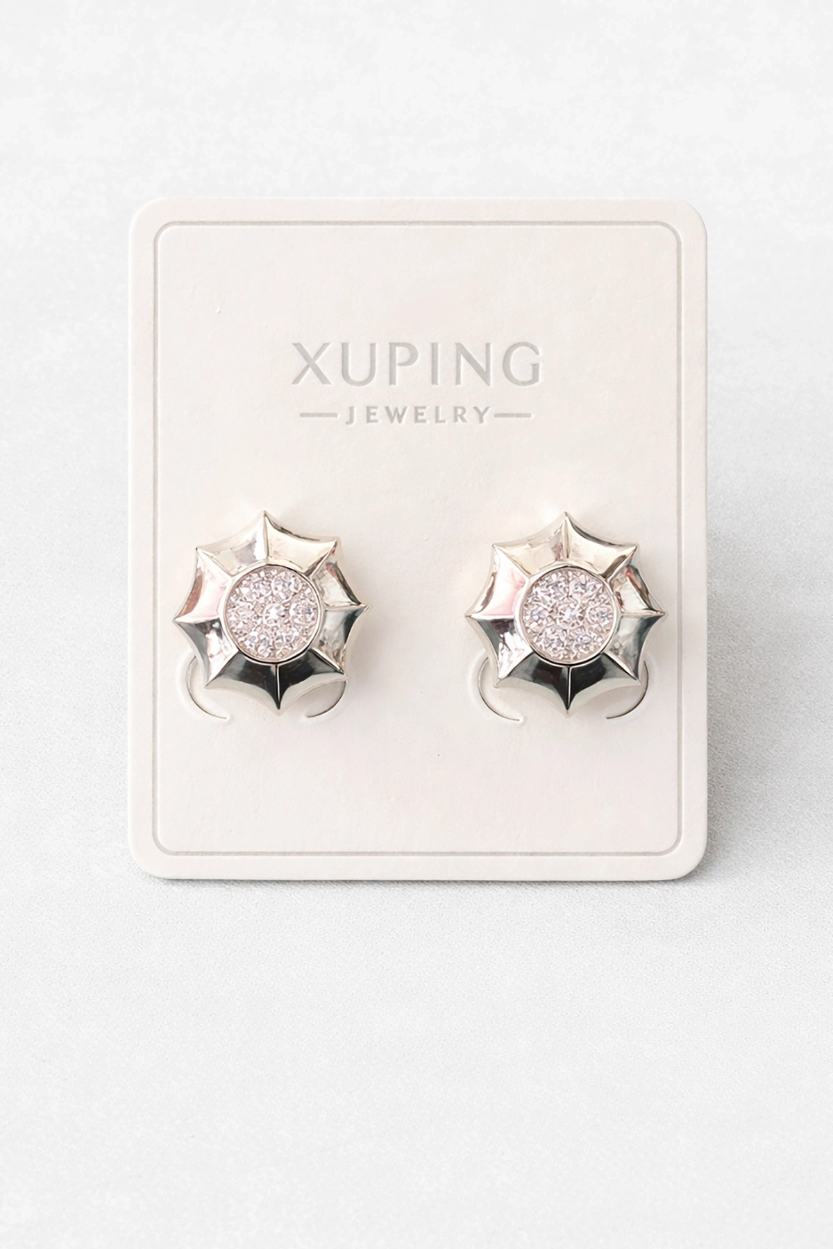 Gümüş Renk Taş Detaylı Çelik Xupıng VİP Küpe