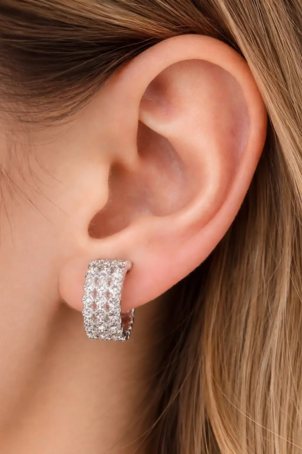 Gümüş Renk Taş Detaylı Çelik Xupıng VİP Earcuff (Çift)