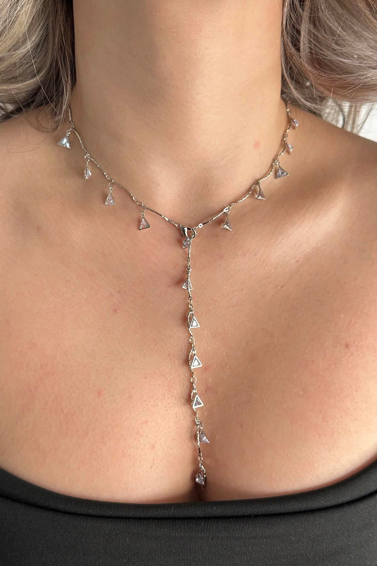 Gümüş Renk Taş Detaylı Çelik Y Kolye