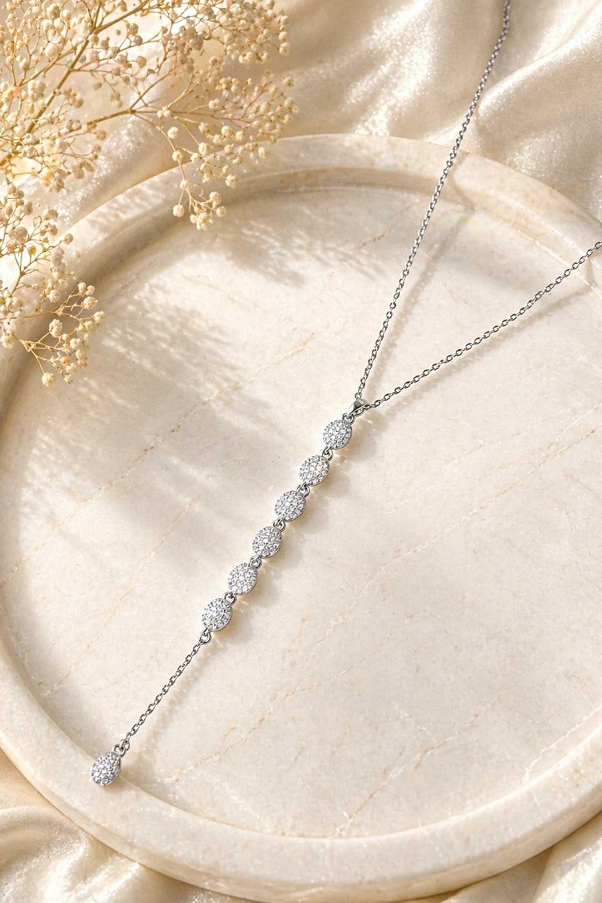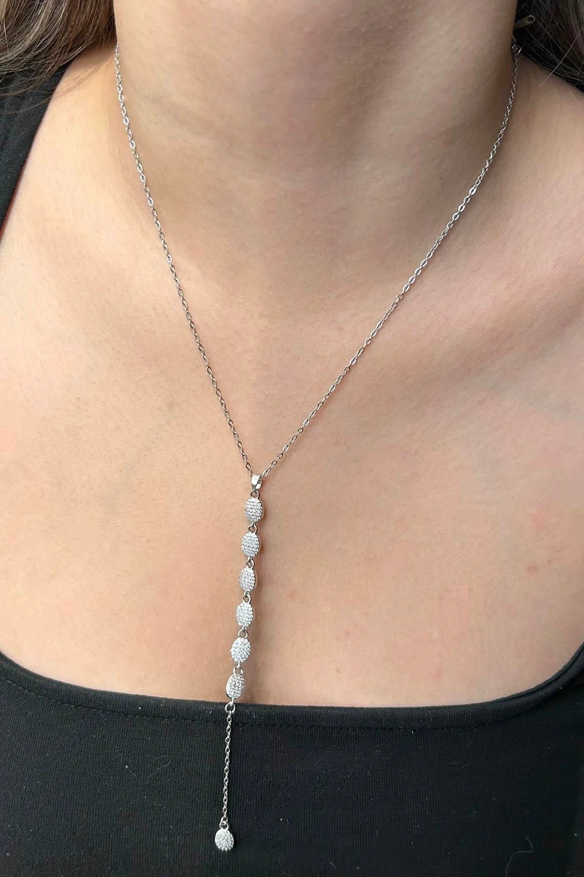 Gümüş Renk Taş Detaylı Çelik Y Kolye