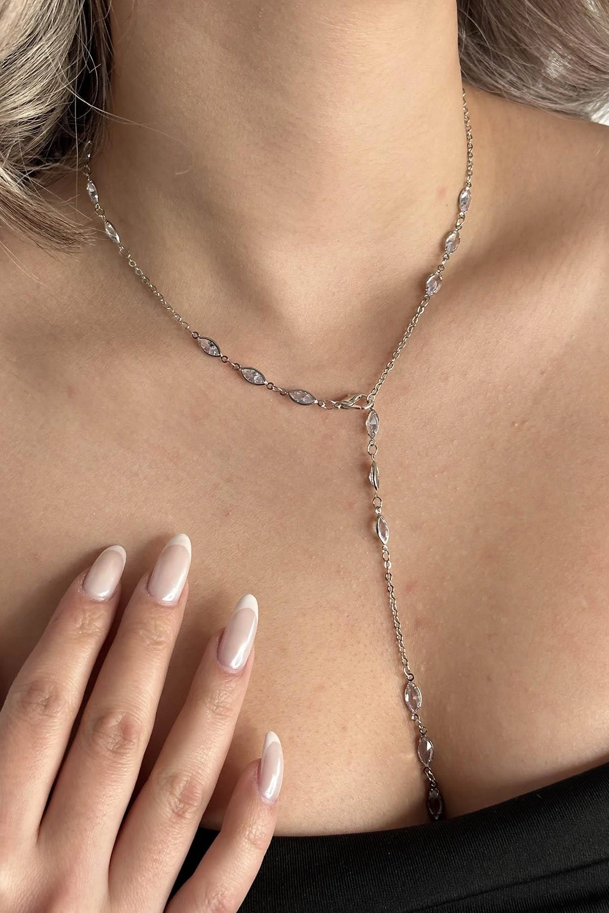 Gümüş Renk Taş Detaylı Çelik Y Kolye