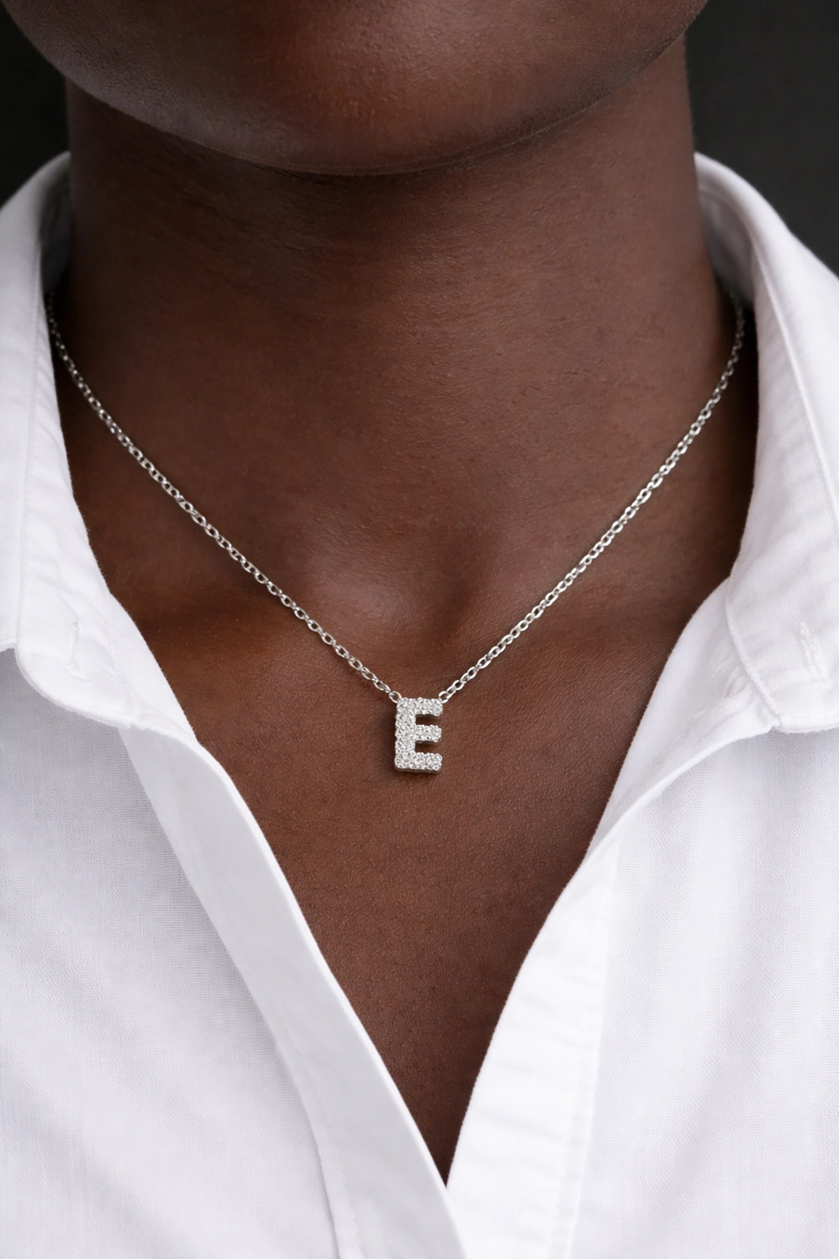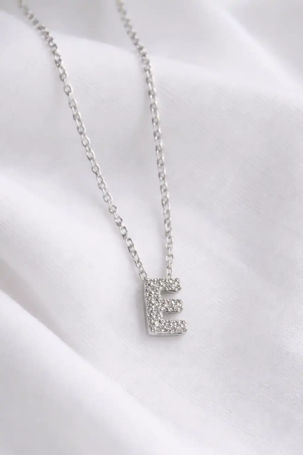 Gümüş Renk Taş Detaylı E Harfli Mini Çelik Kolye