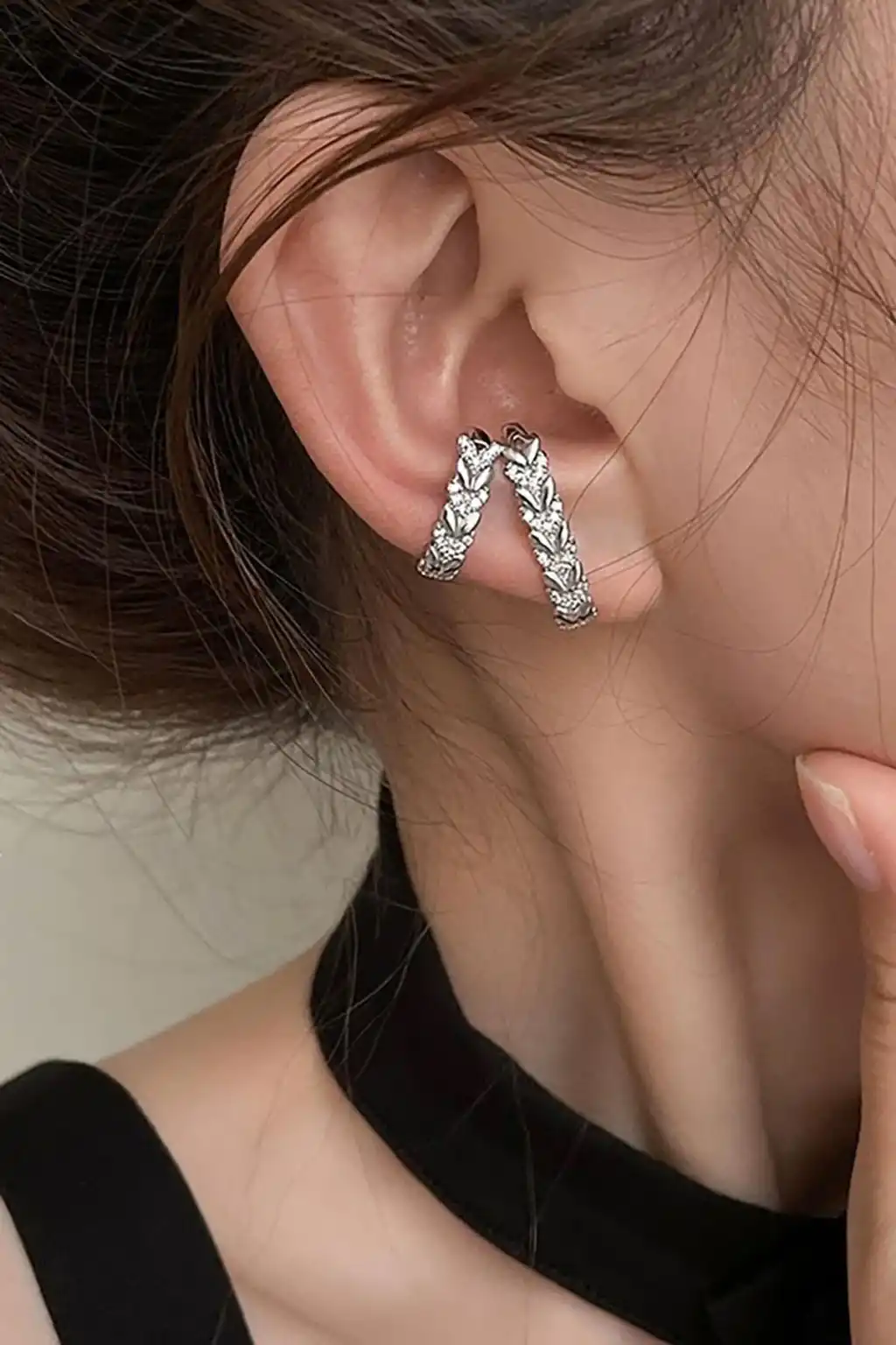Gümüş Renk Taş Detaylı Ear Cuff (Tek)