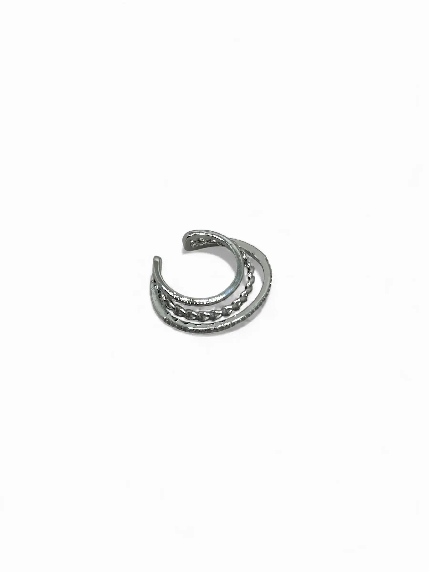 Gümüş Renk Taş Detaylı Üçlü Görünümlü Ear Cuff (Tek)