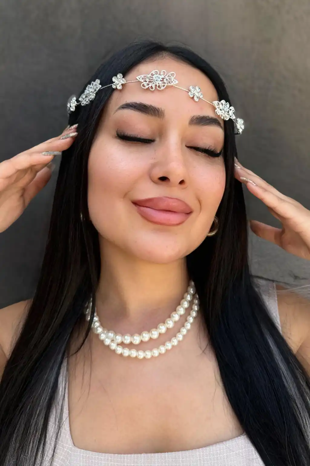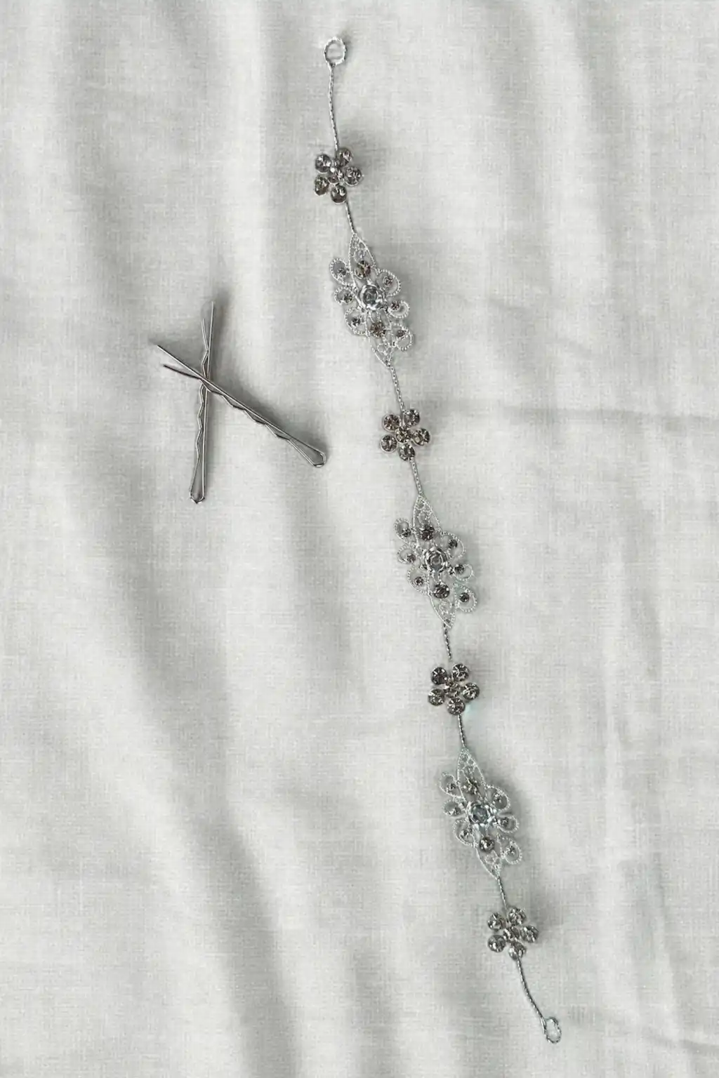 Gümüş Renk Taş Detaylı Saç Aksesuarı/ Kına Aksesuarı