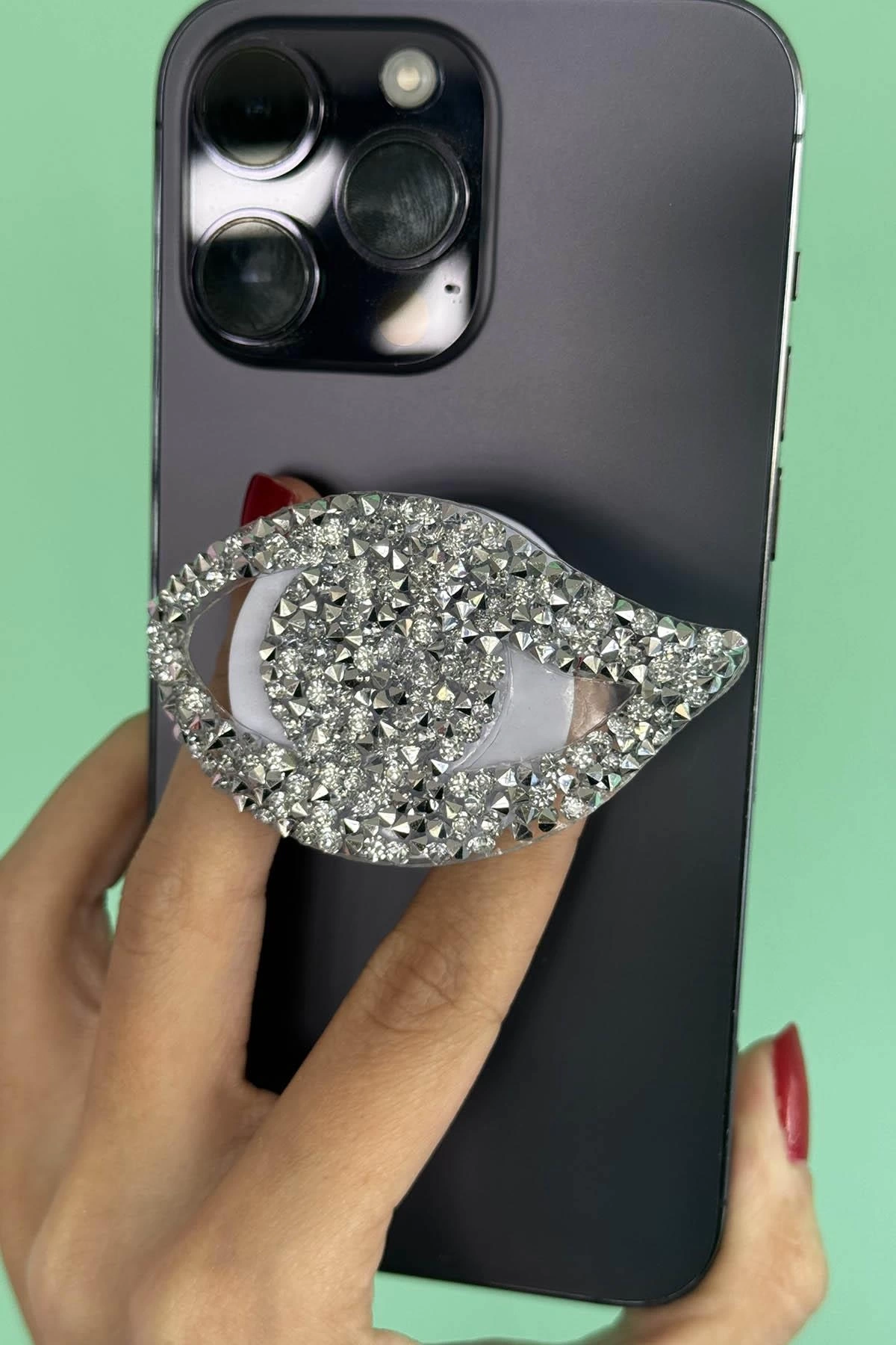 Gümüş Renk Taş Detaylı Göz Figürlü 3D Telefon Tutacağı